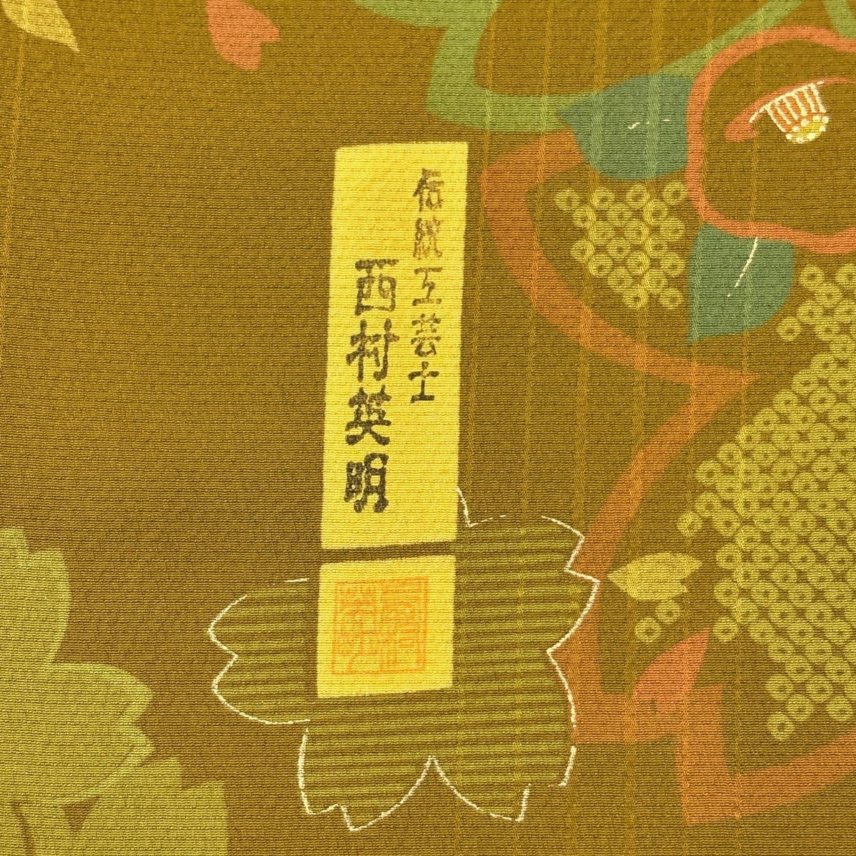 訪問着 身丈160.5cm 裄丈68.5cm L 袷 牛首紬地 落款あり 幾何学模様 茶緑色 正絹 逸品