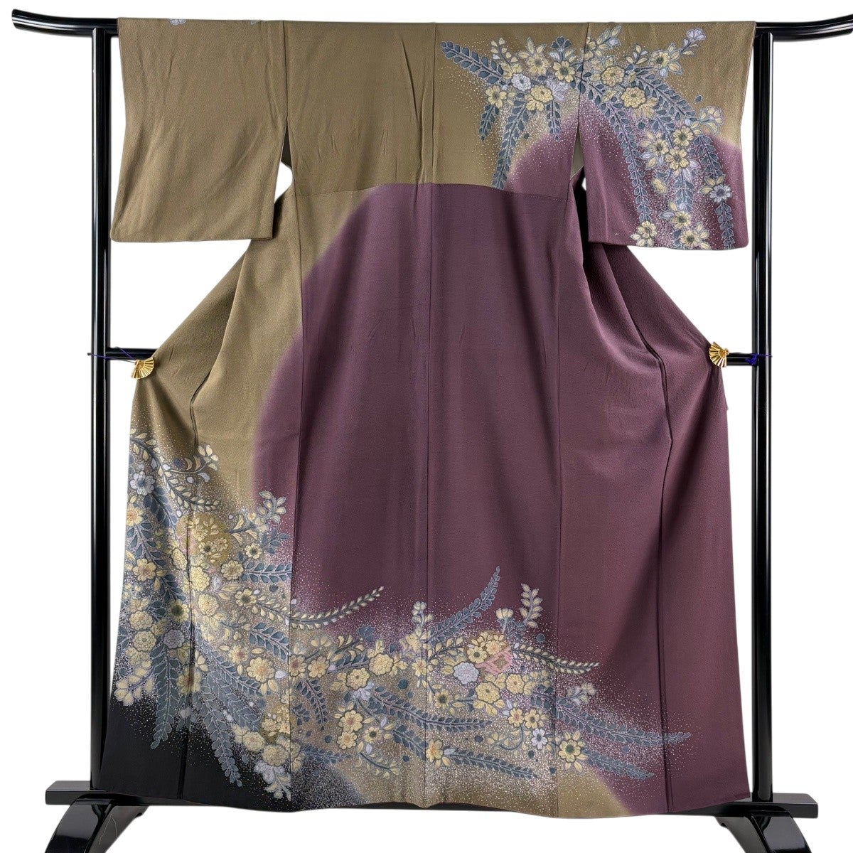 訪問着 身丈160cm 裄丈61.5cm S 袷 雪輪 辻が花 金彩 染め分け 茶緑色 正絹 秀品