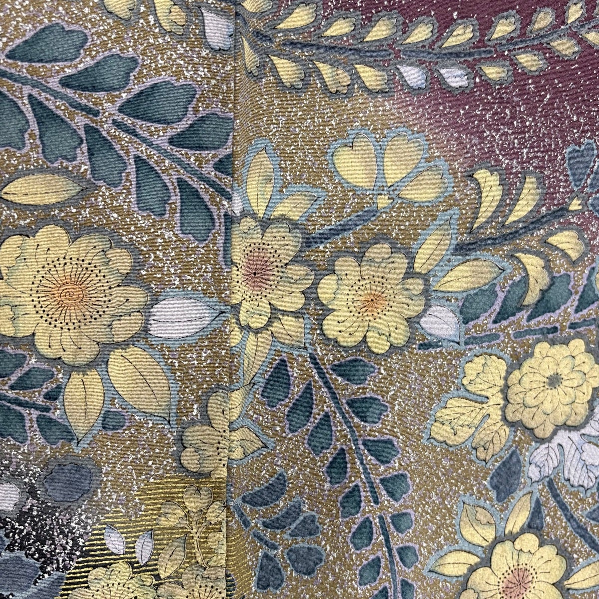 振袖 身丈159cm 裄丈65.5cm M 袷 辻が花柄 熨斗 銀通し 金銀彩 茶緑色 正絹 逸品