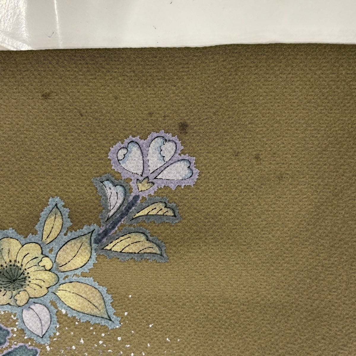 付下げ 身丈158.5cm 裄丈66cm M 袷 落款あり 霞 箔散らし 金彩 箔 茶緑色 正絹 秀品