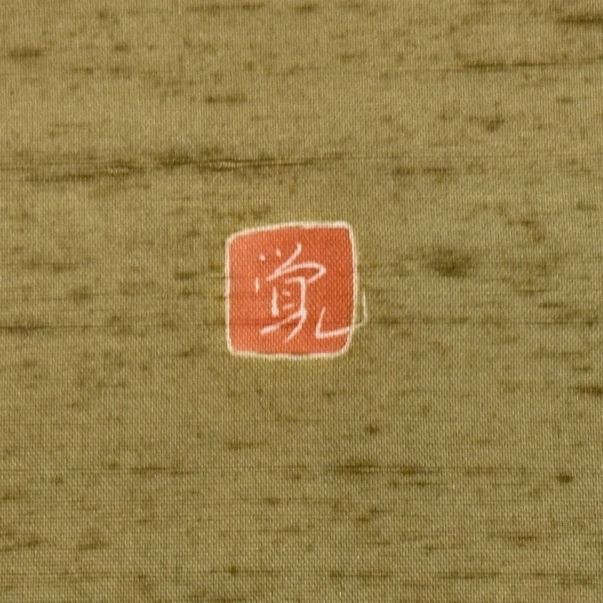 袋帯 逸品 誉田屋源兵衛 落款あり 関西仕立て 幾何学模様 螺鈿箔 金糸 茶緑色 お太鼓柄 正絹
