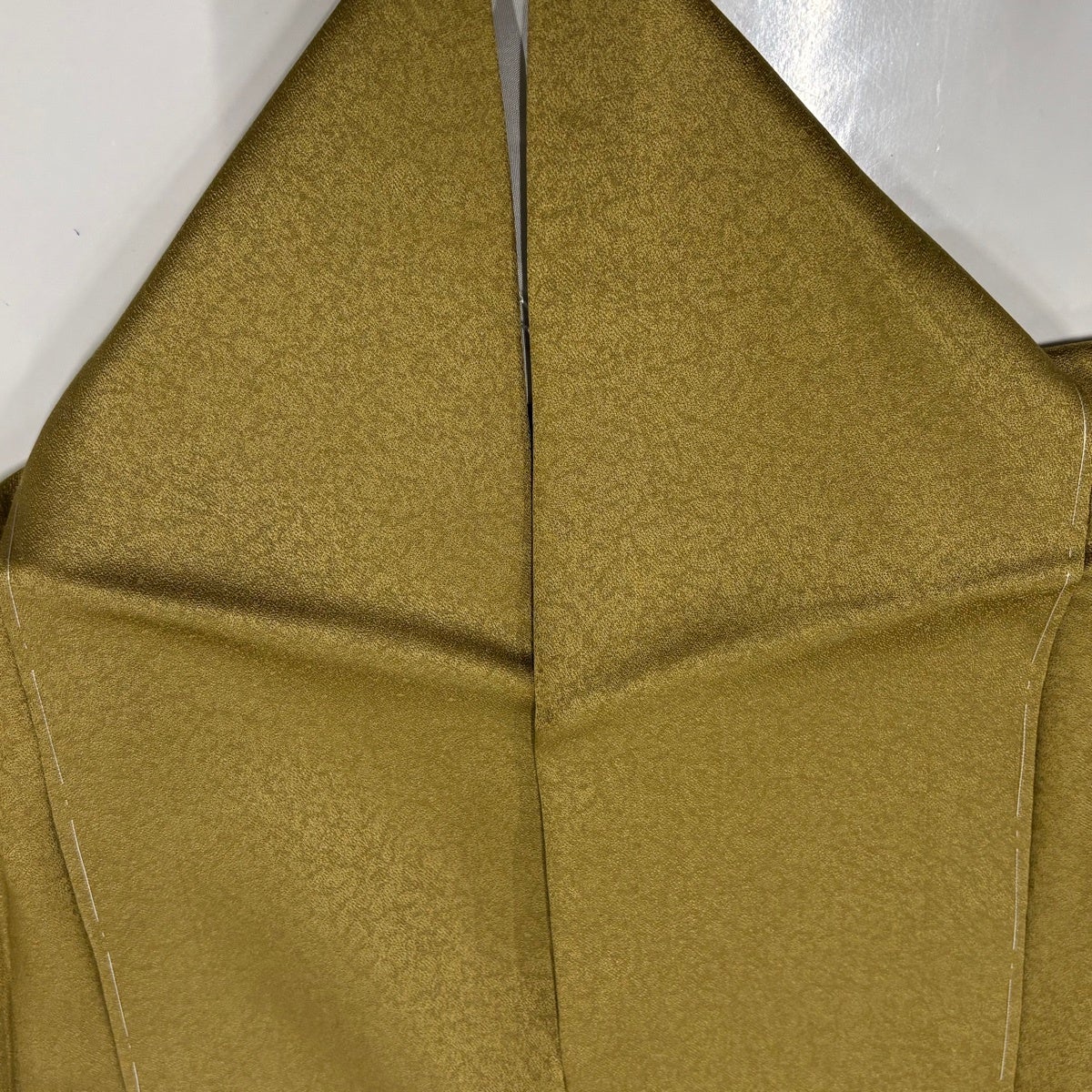 付下げ 身丈153cm 裄丈65cm M 薄物 夏紬地 松皮菱 有職文様 茶緑色 正絹 秀品 一つ紋