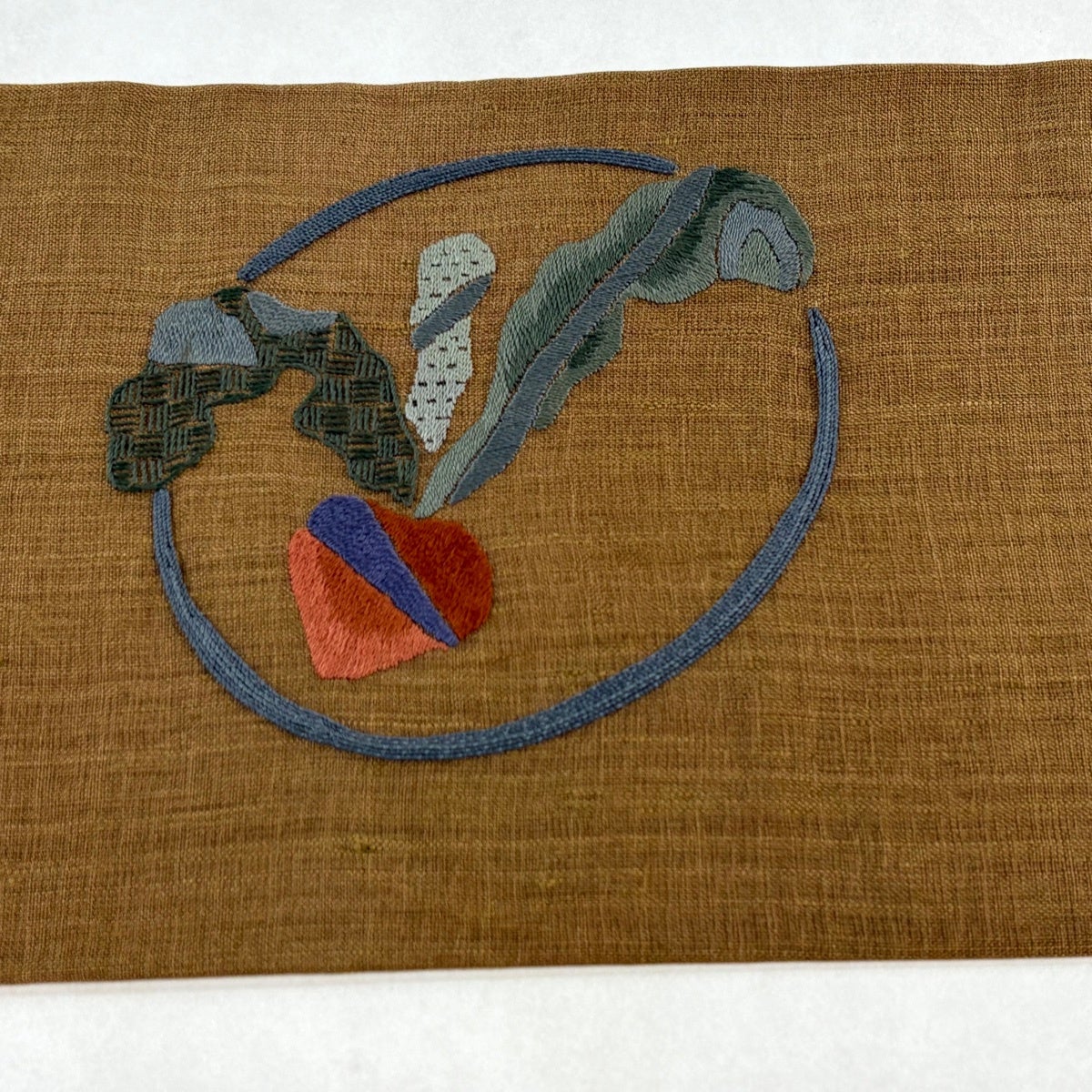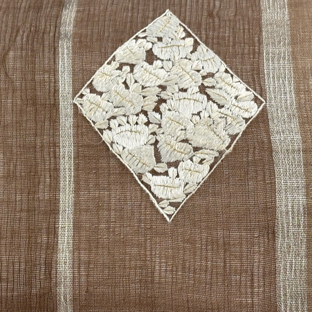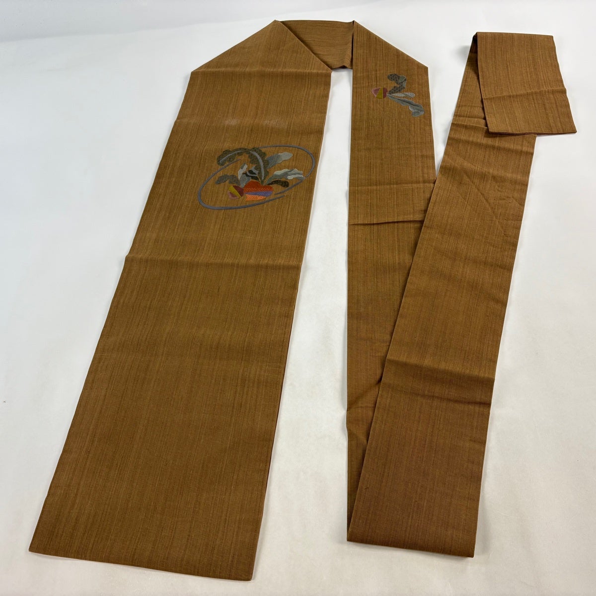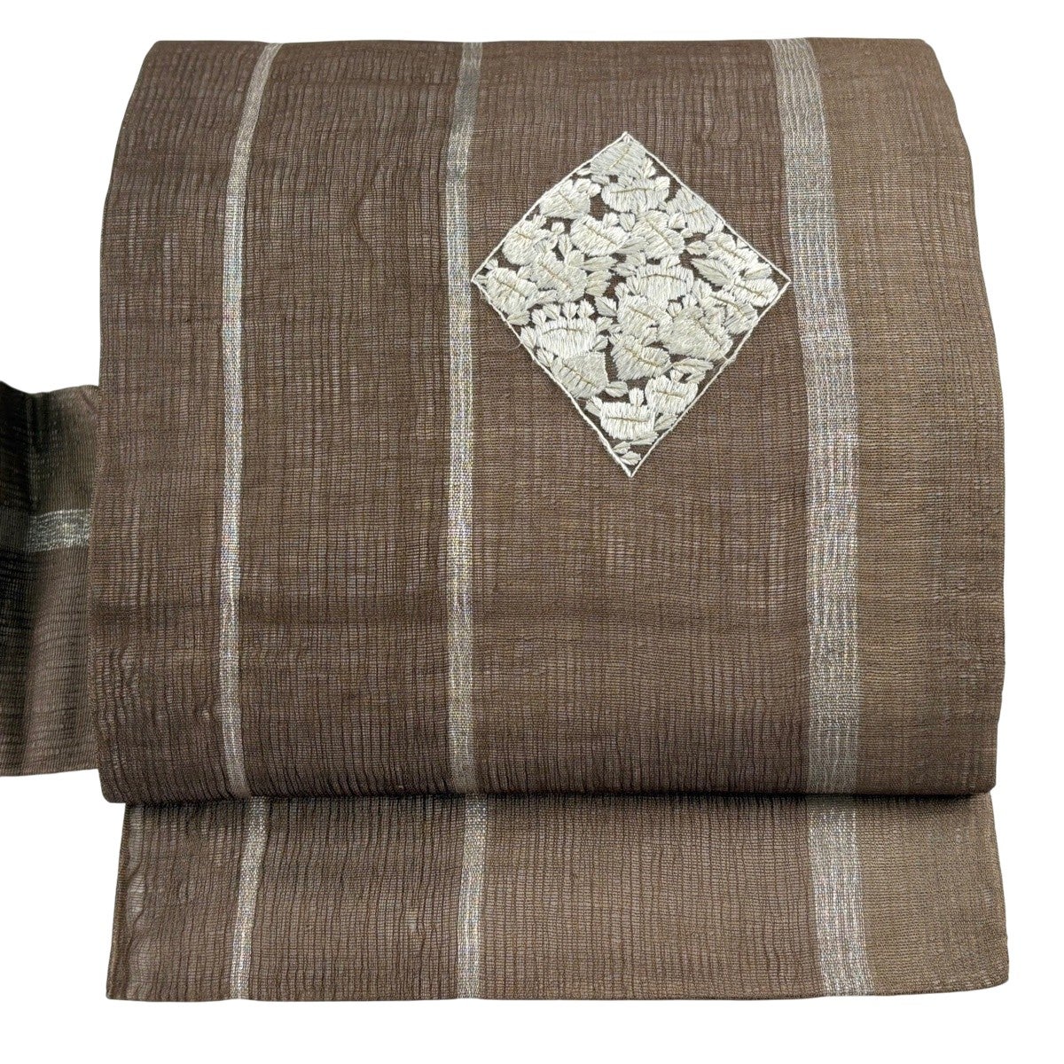 【美品】 名古屋帯 秀品 紬地 花 刺繍 茶色 正絹