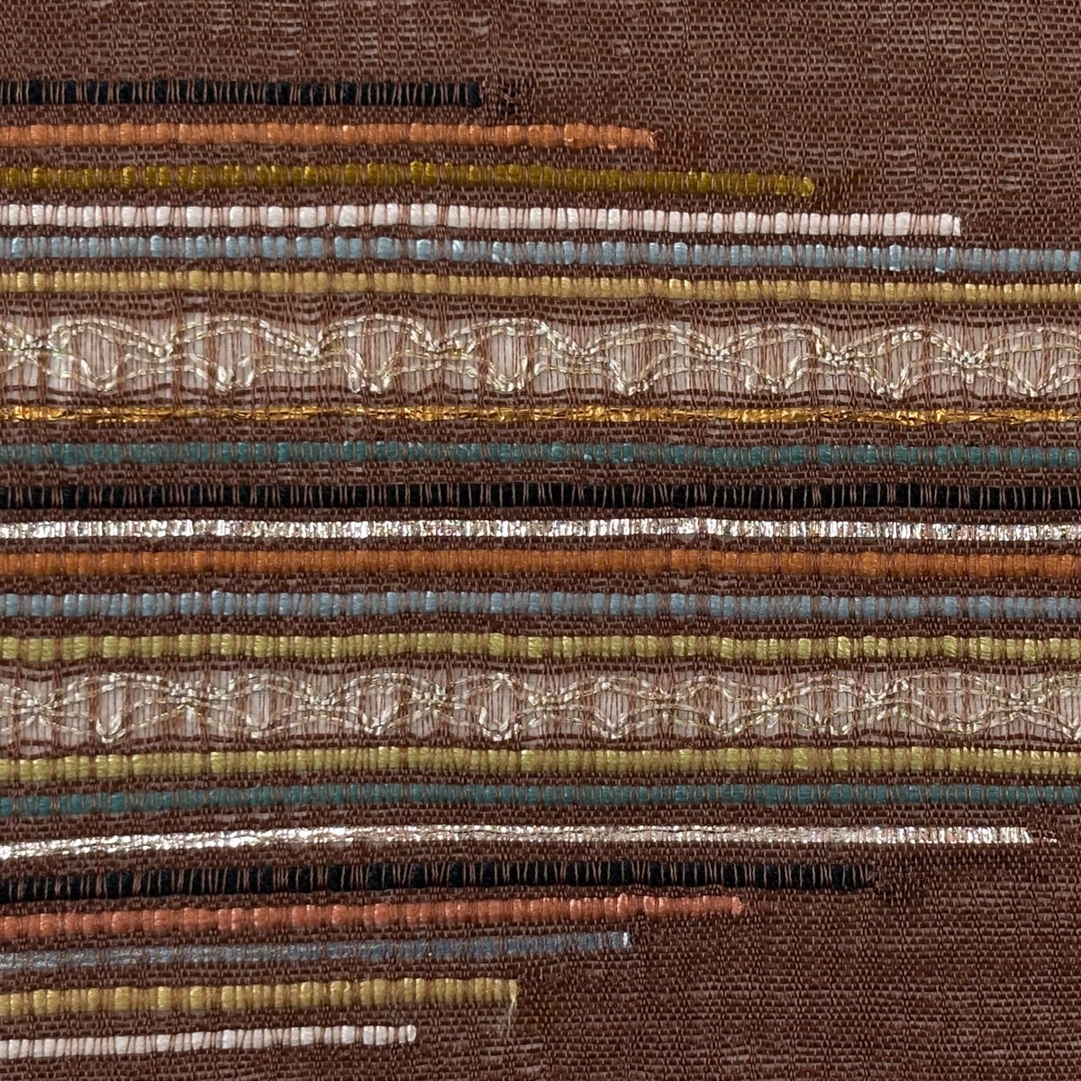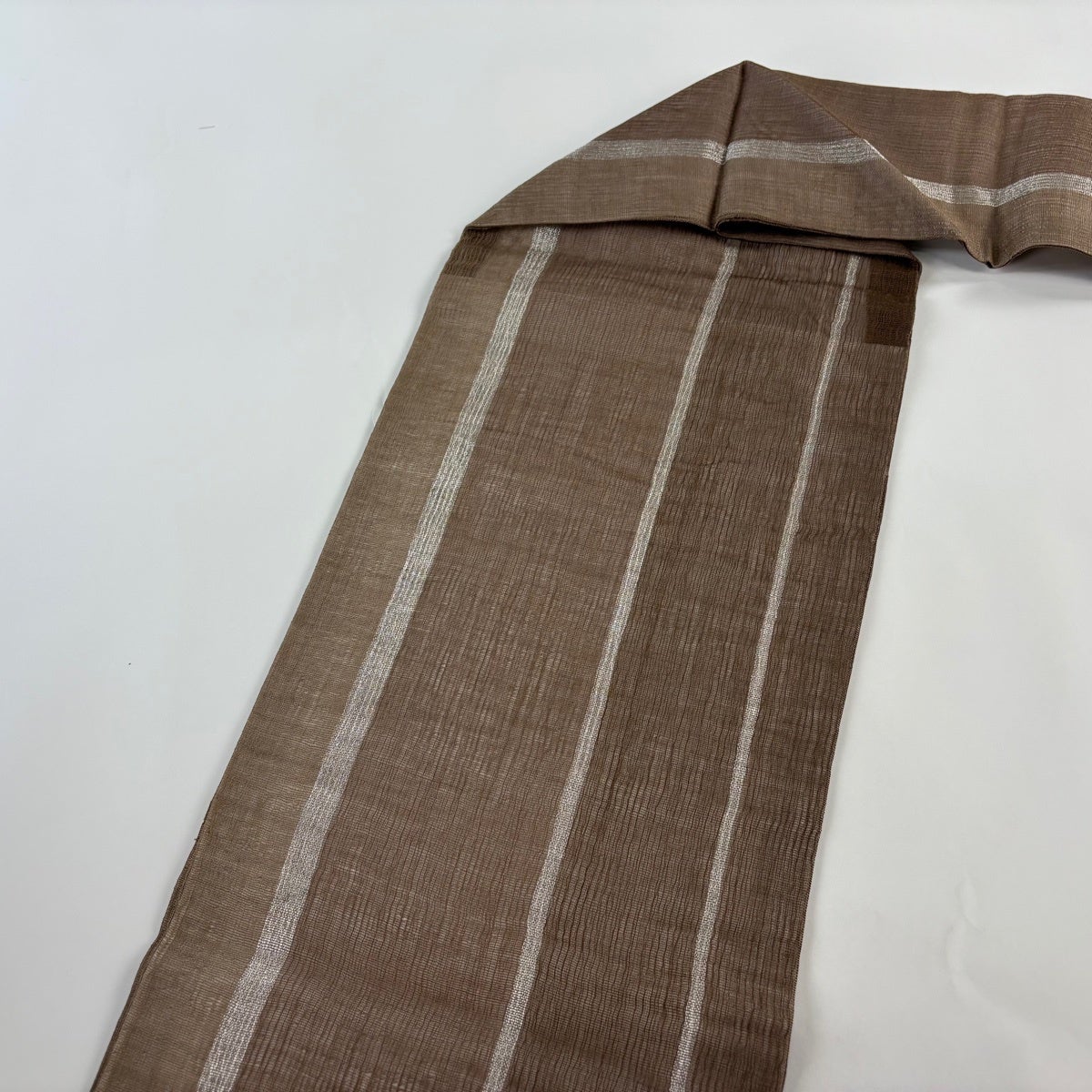 【美品】 名古屋帯 秀品 夏帯 縞 金銀糸 箔 茶色 正絹