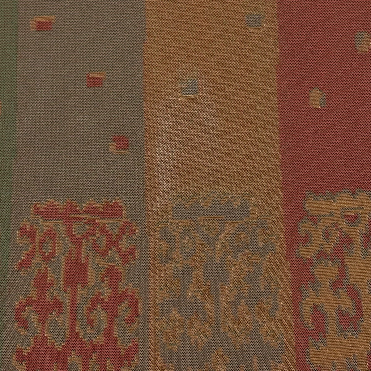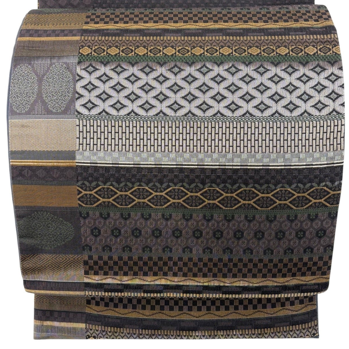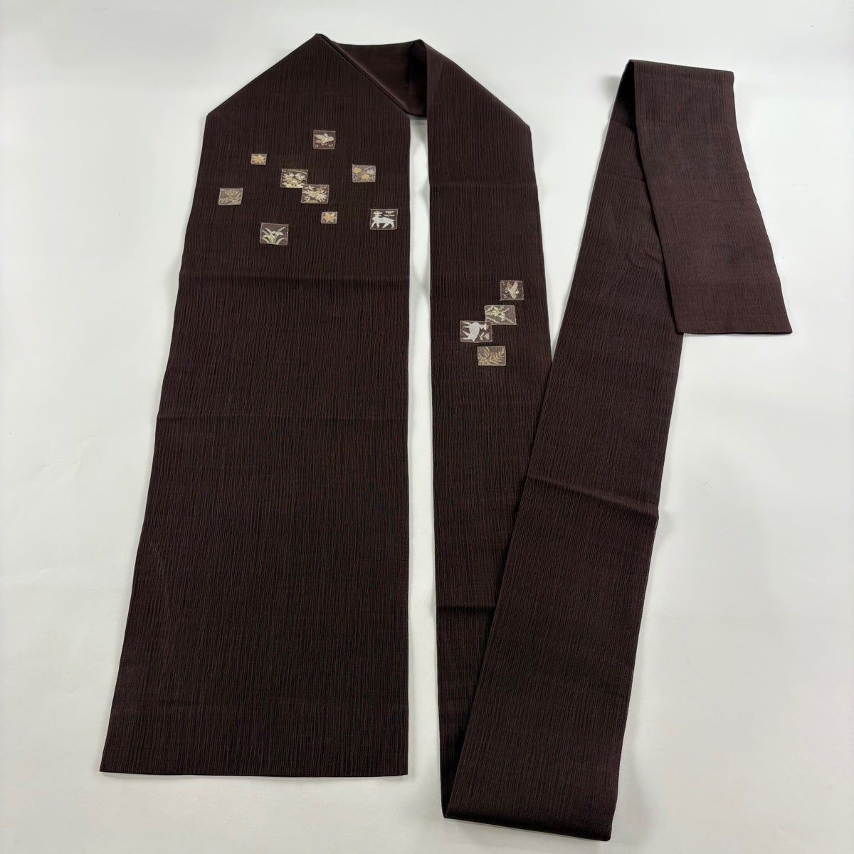【美品】 袋帯 名品 四神 市松 箔 茶色 全通 正絹