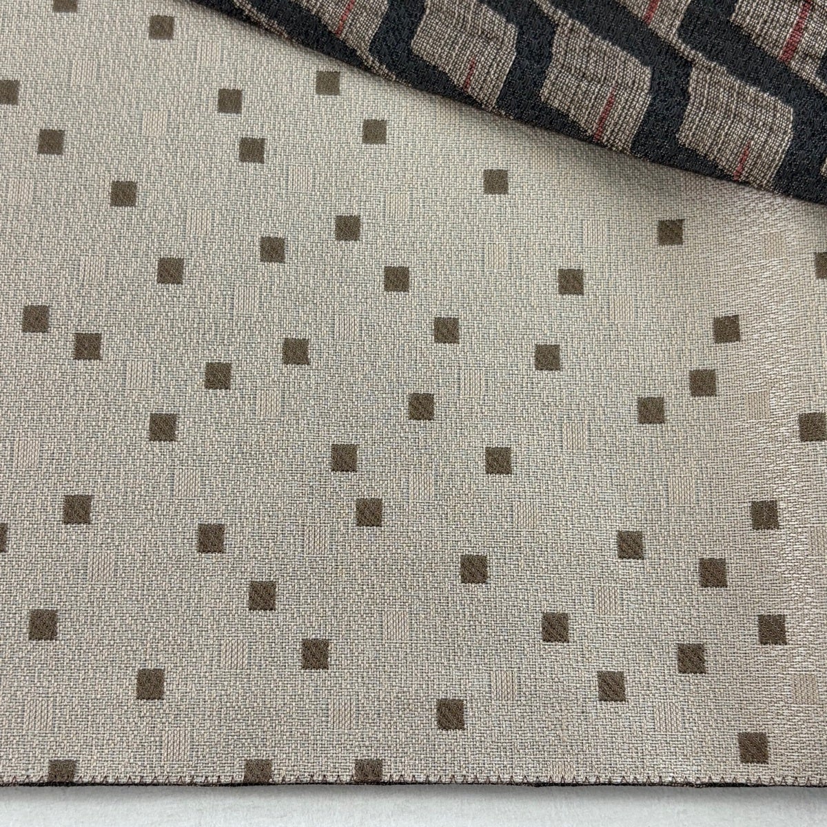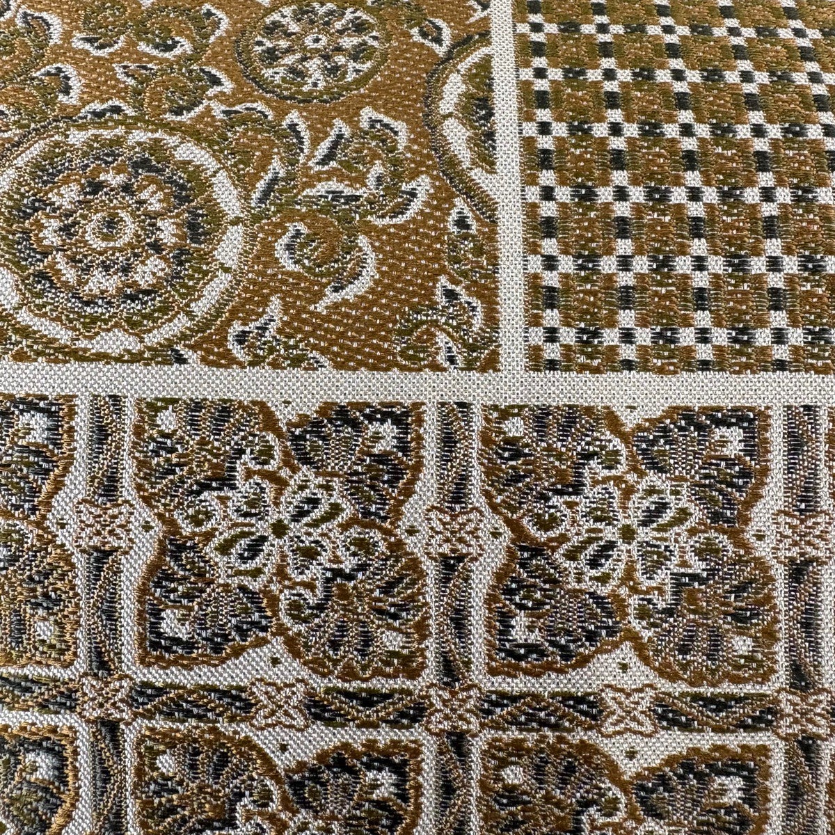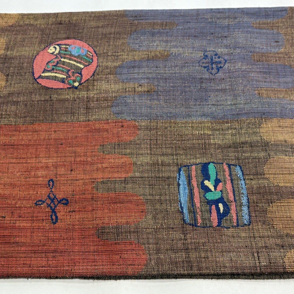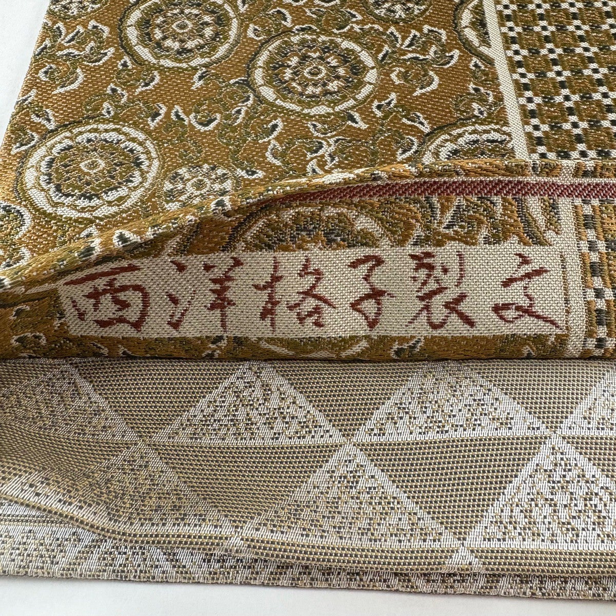袋帯 秀品 証紙あり 市松 文字紋 茶色 六通 正絹