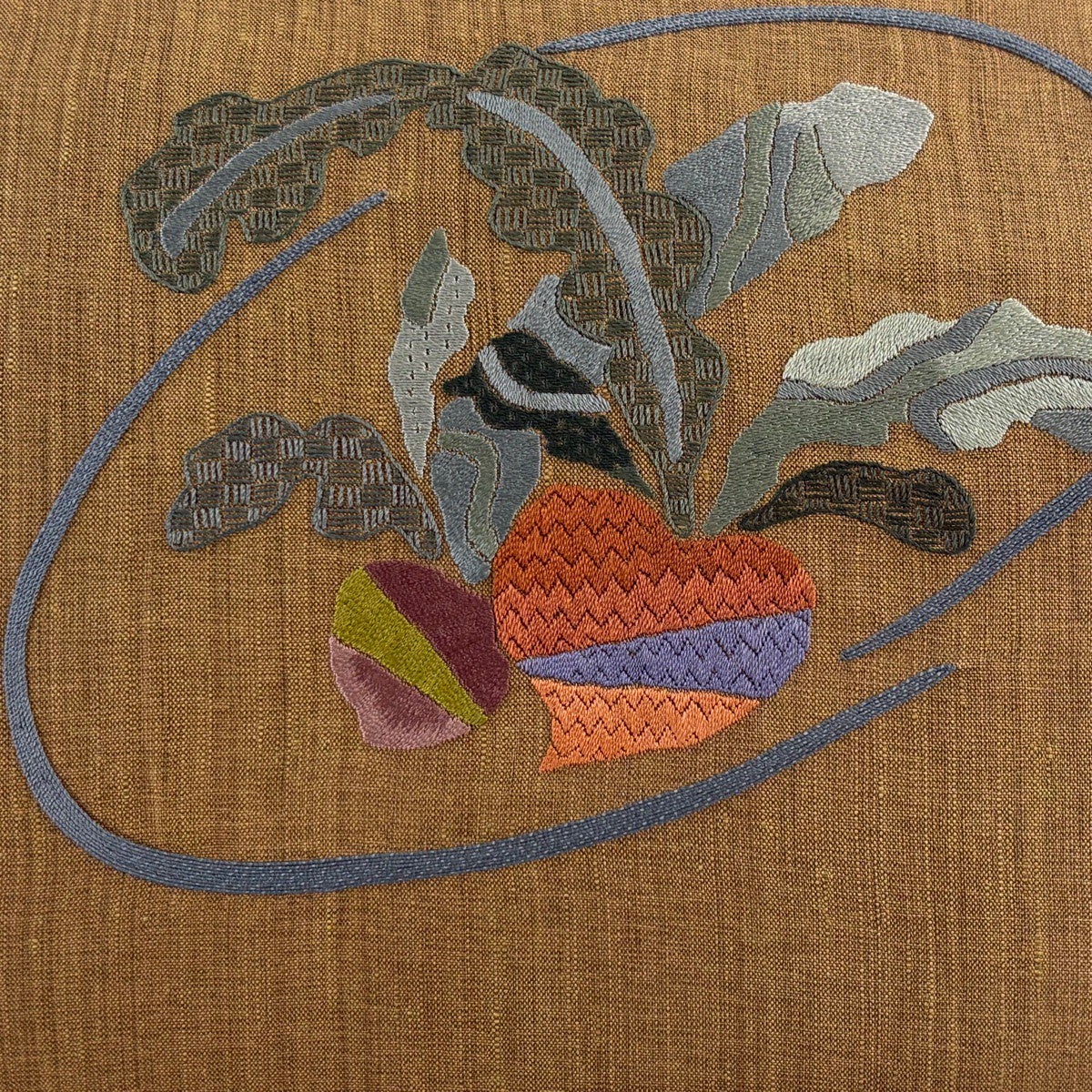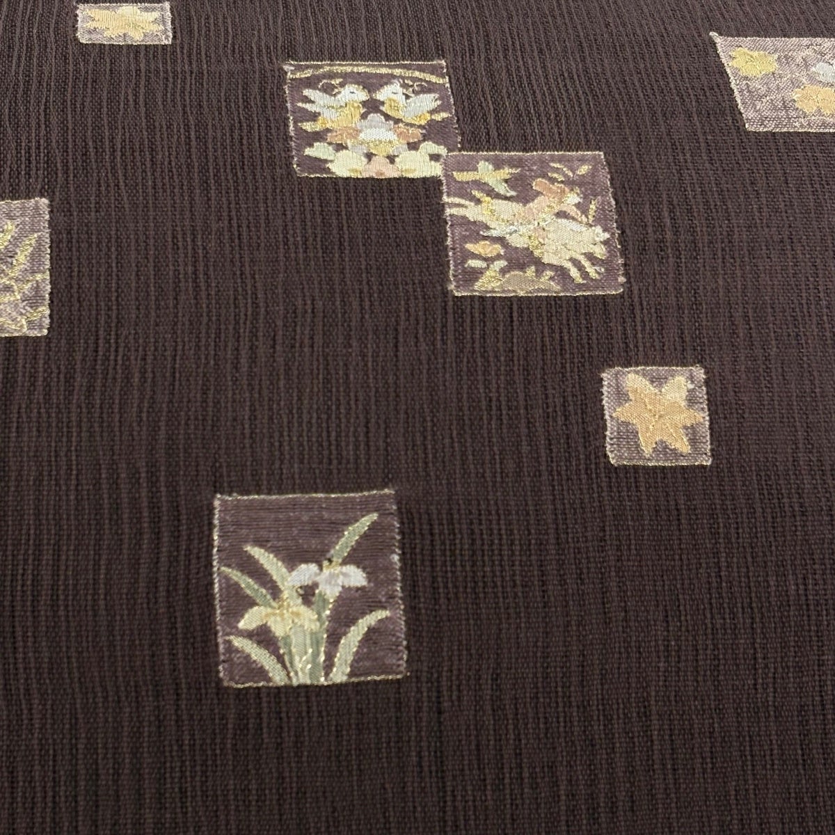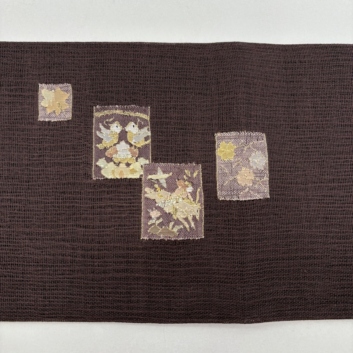 名古屋帯 秀品 華文 花鳥 相良刺繍 金彩 茶色 正絹