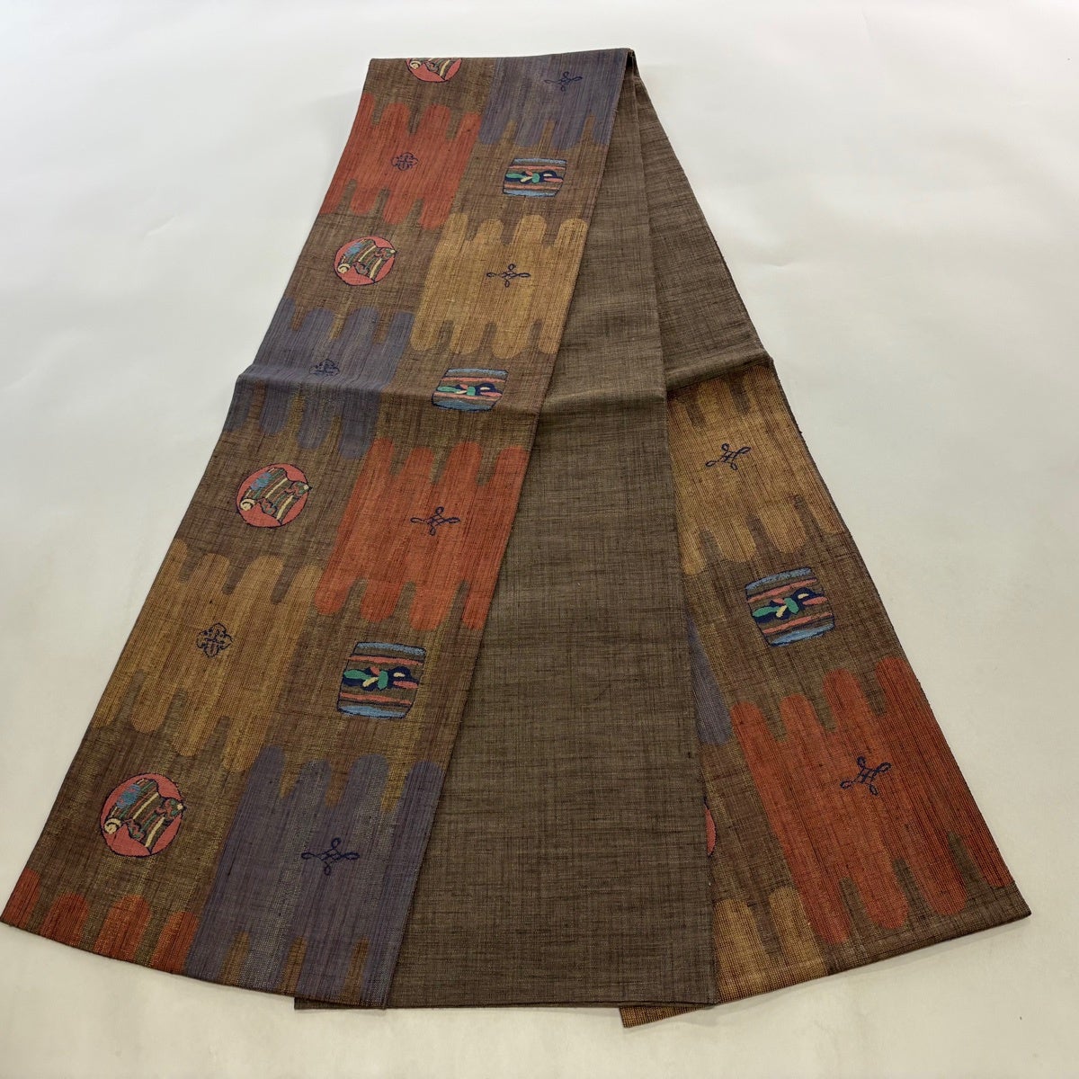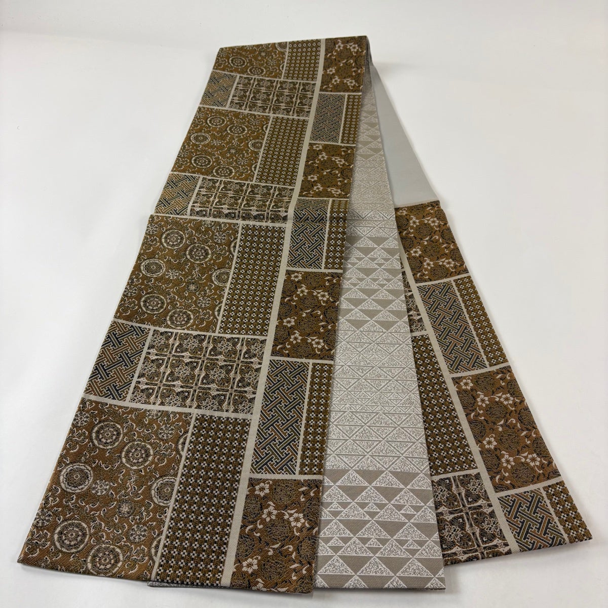 30%OFF 名古屋帯 秀品 幾何学 茶色 正絹 K30