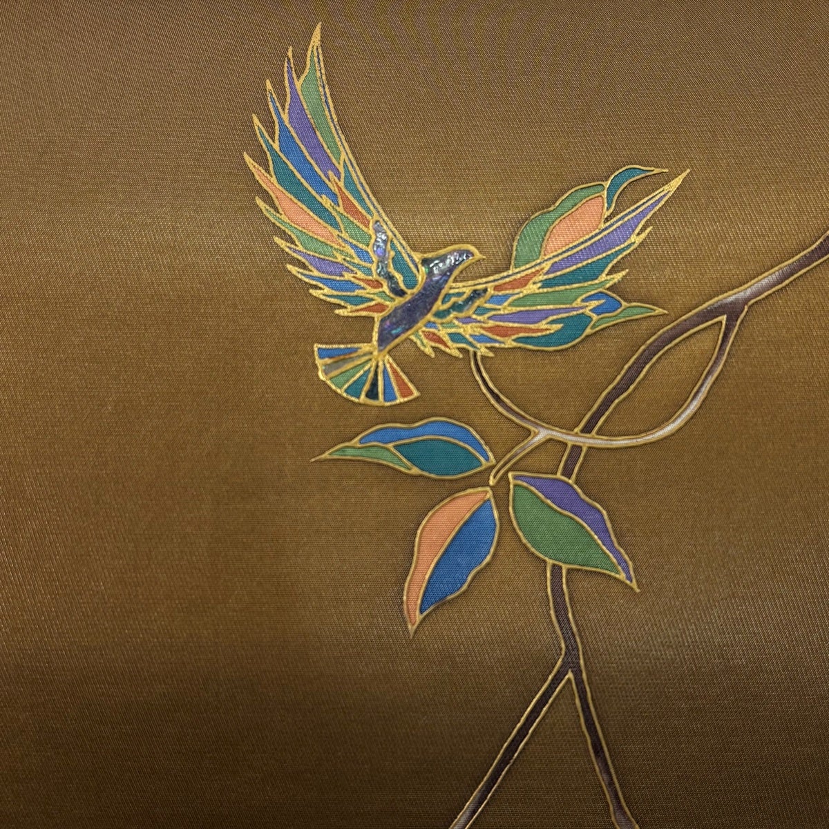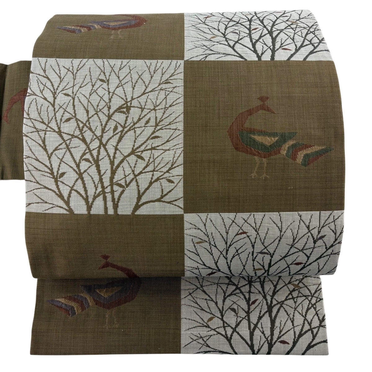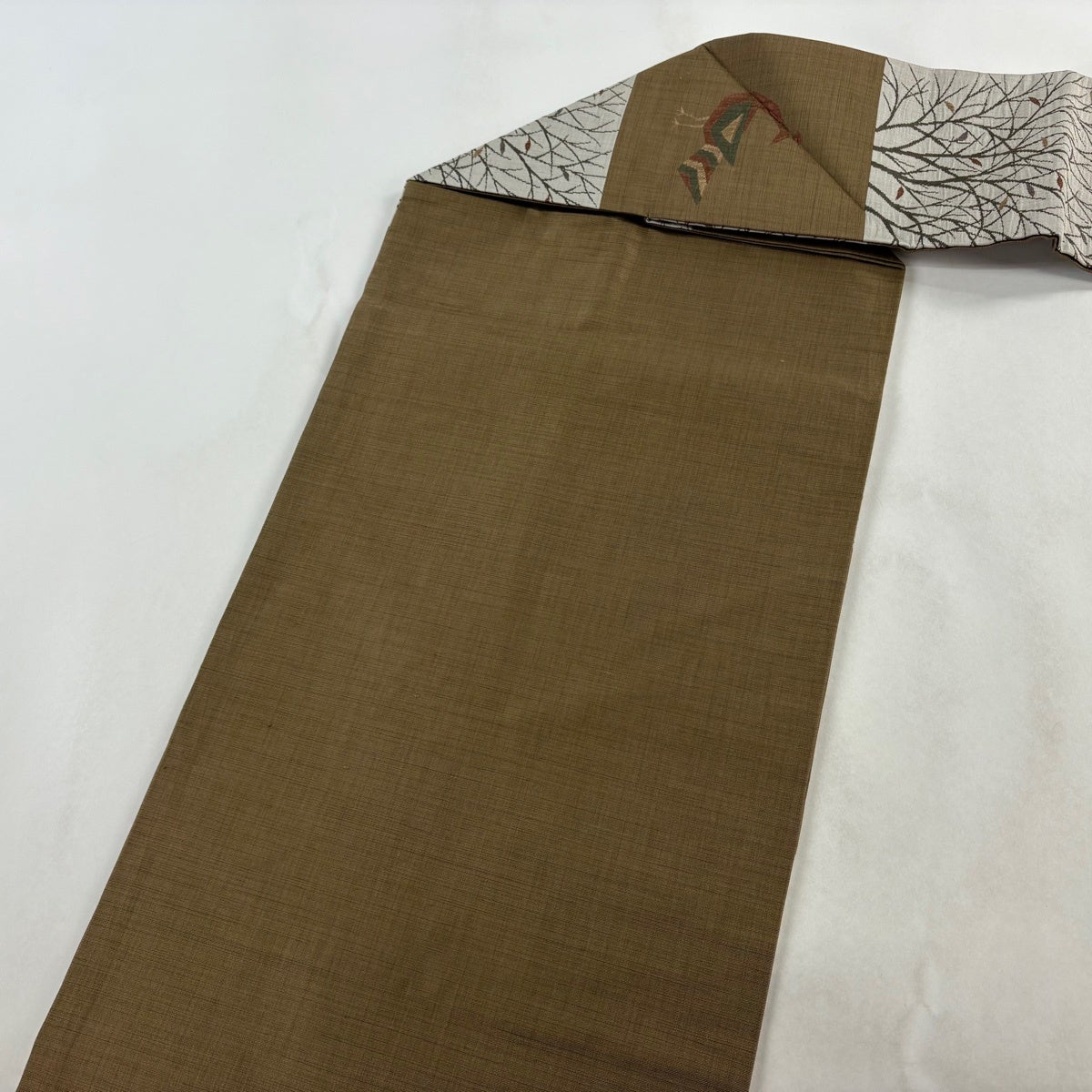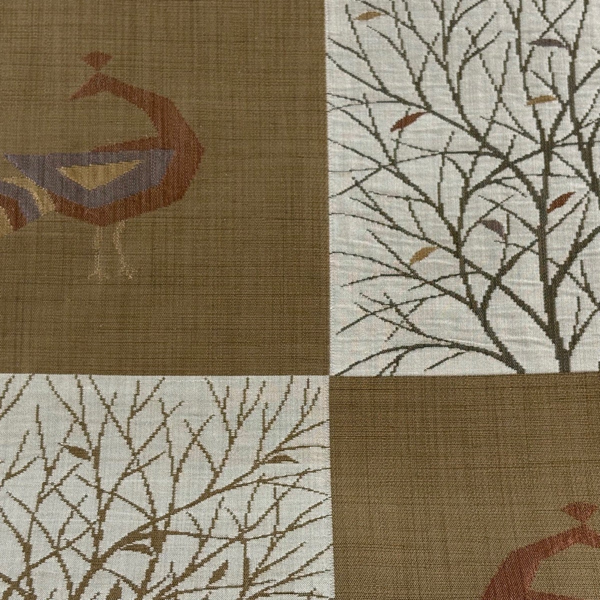 袋帯 秀品 鳥 枝葉 螺鈿 金彩 茶色 お太鼓柄 正絹