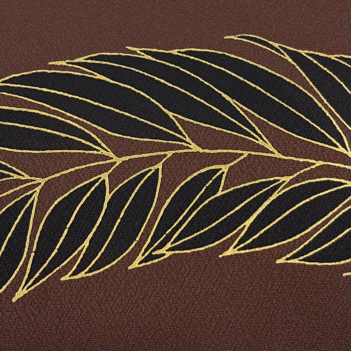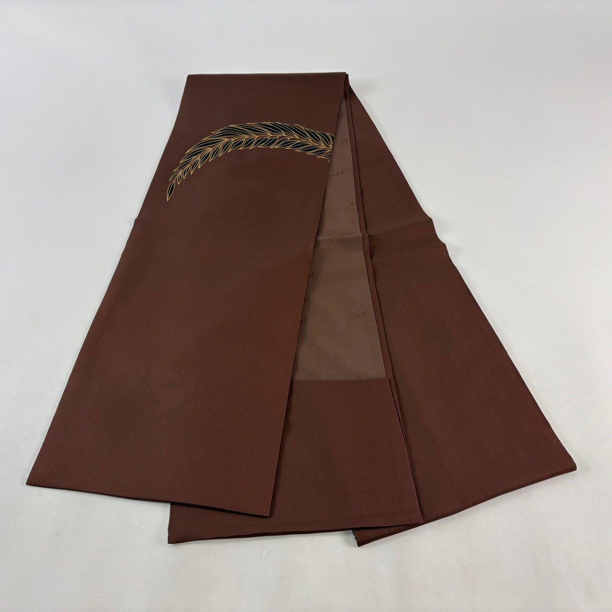 【美品】 開き名古屋帯 秀品 葉柄 金彩 茶色 正絹