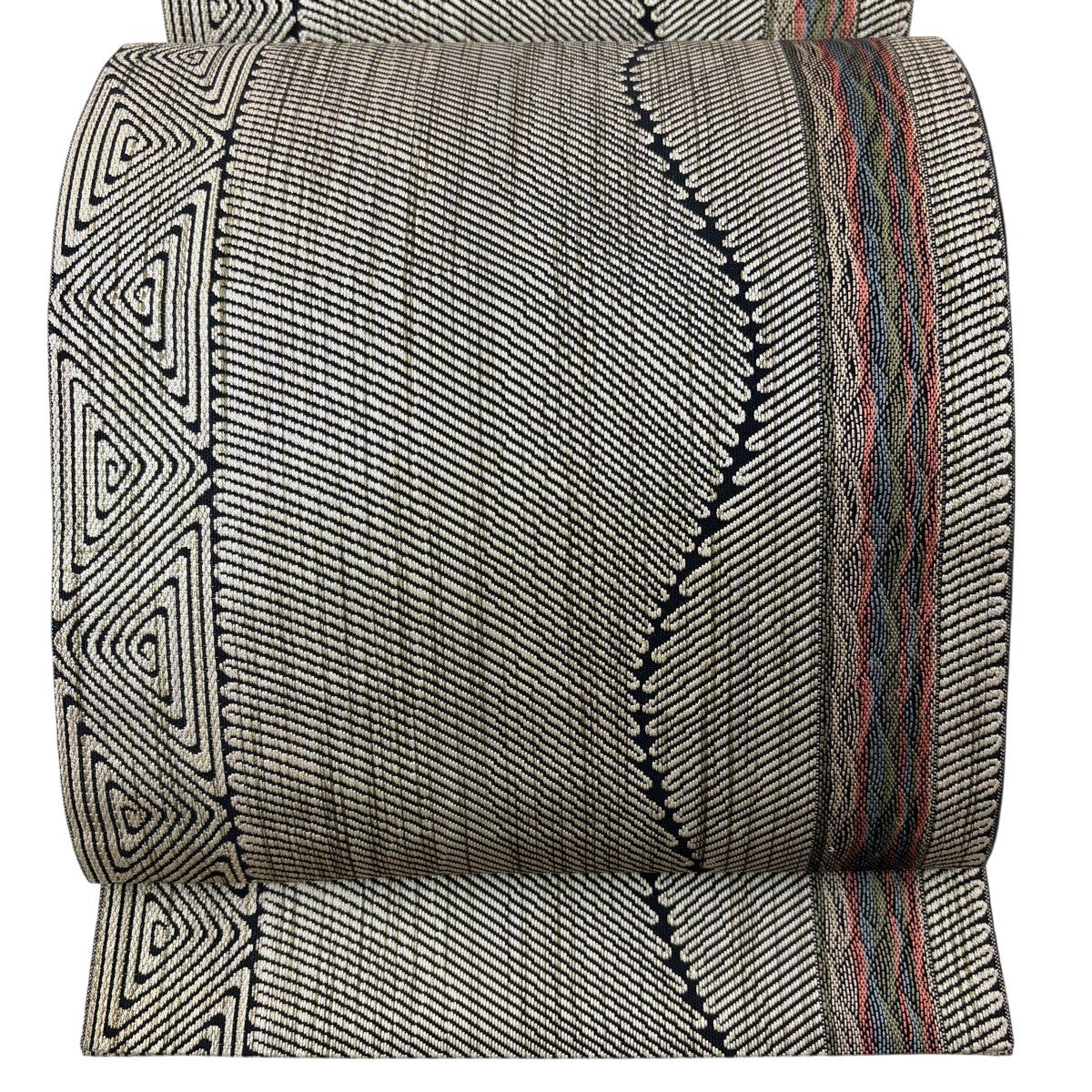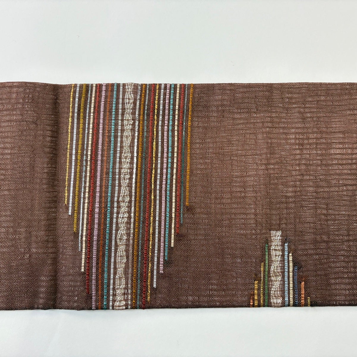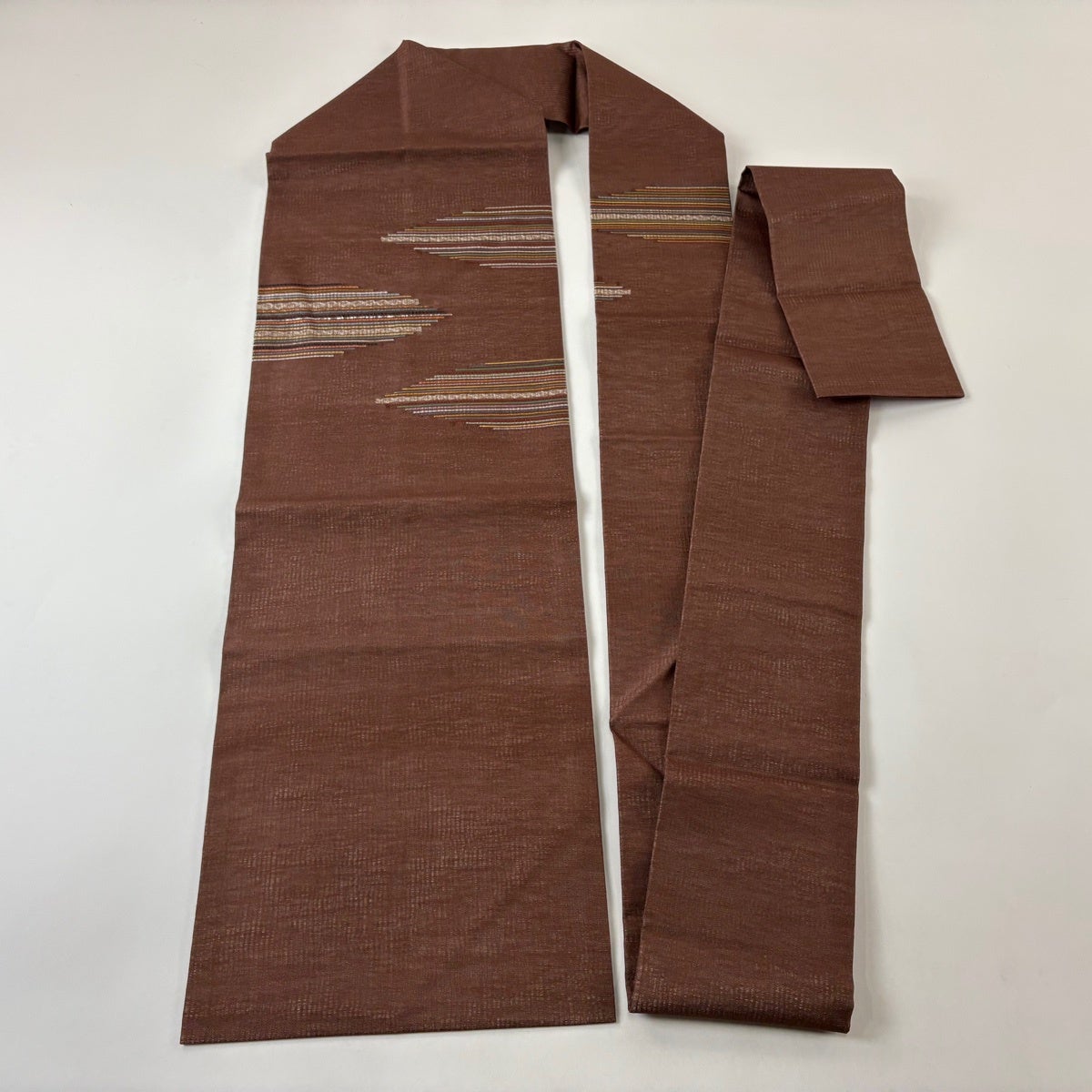 袋帯 名品 木屋太 落款あり 縞 幾何学 茶色 全通 正絹