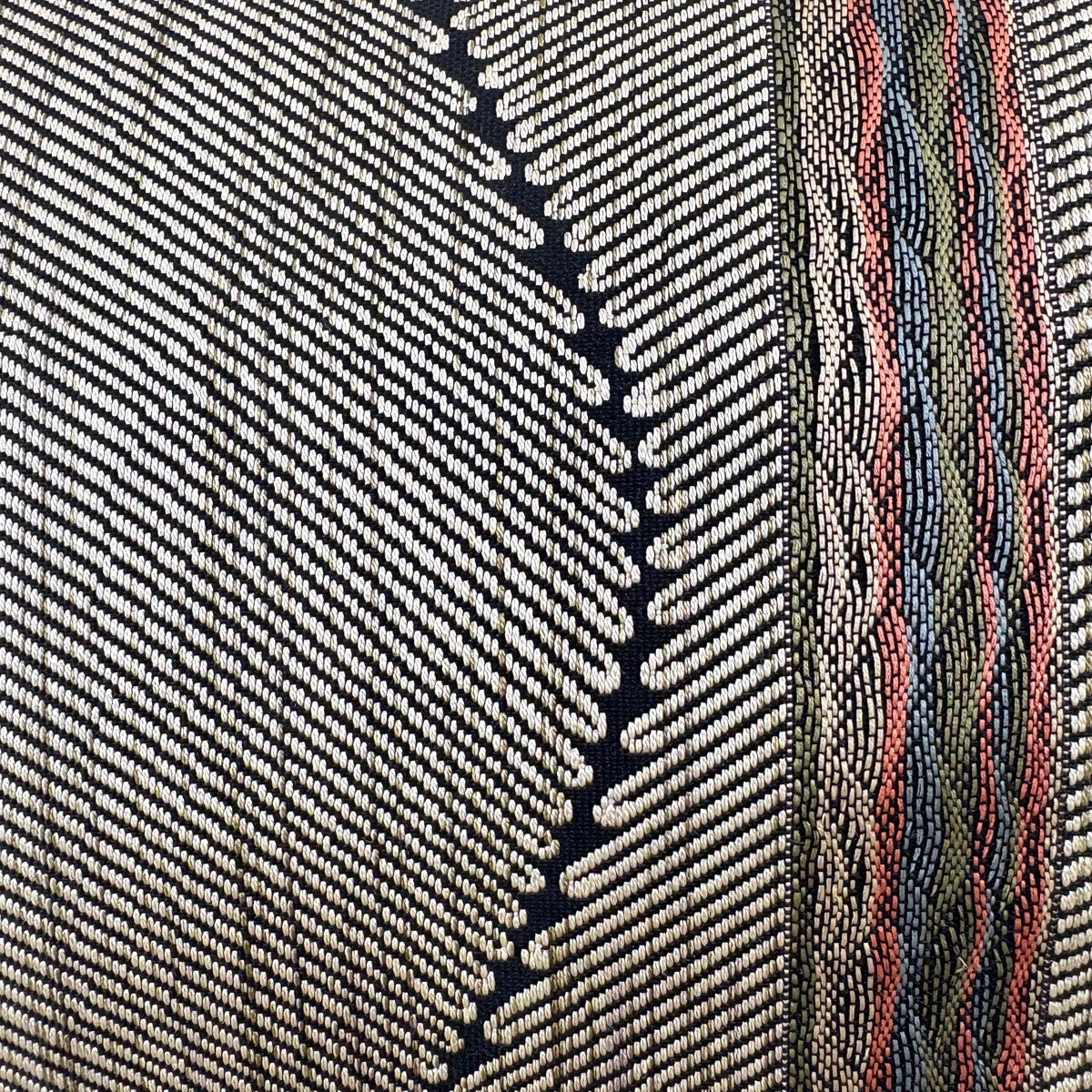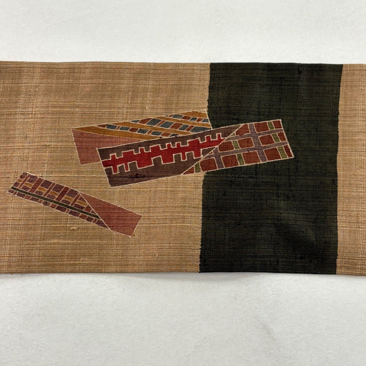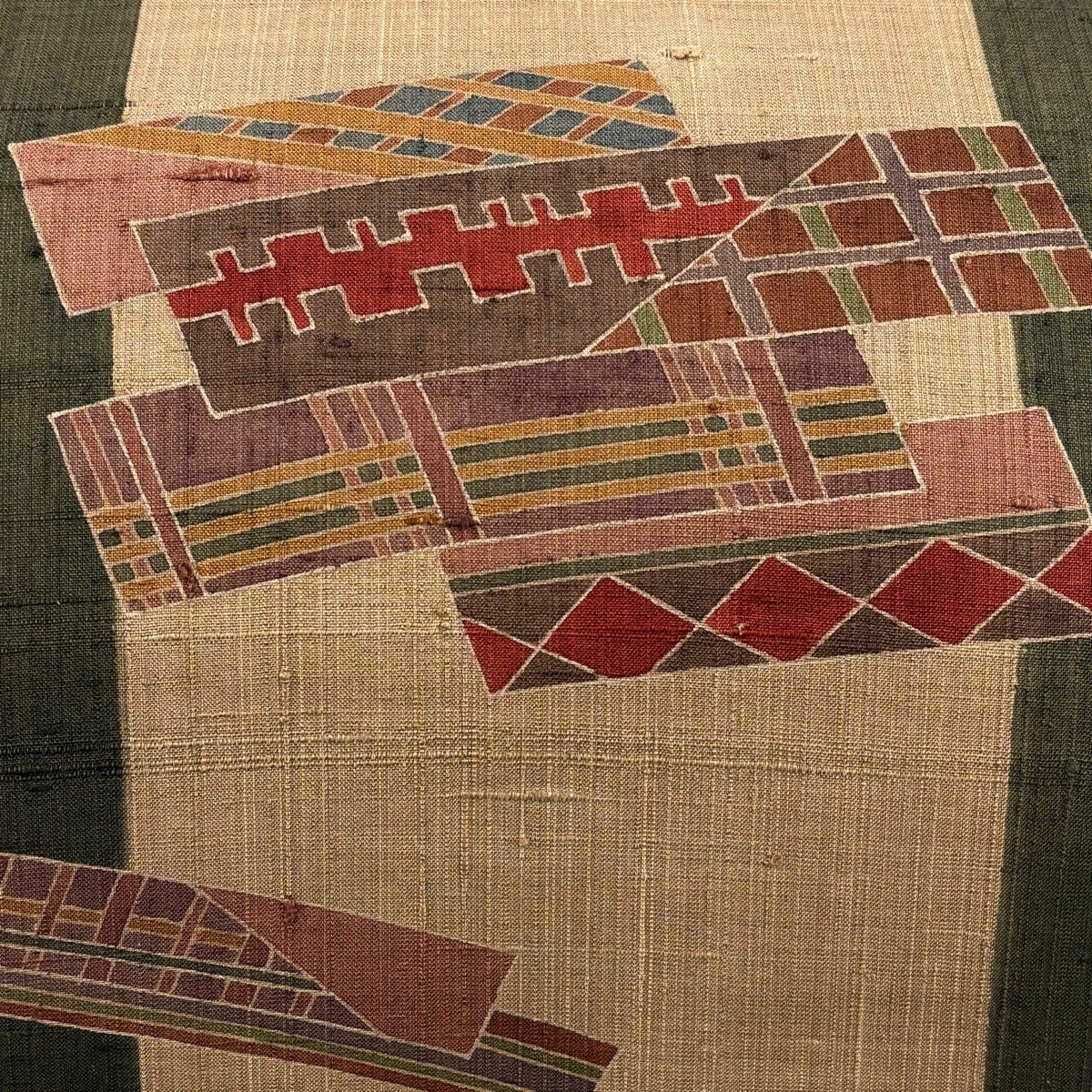 袋帯 名品 木屋太 落款あり 縞 幾何学 茶色 全通 正絹