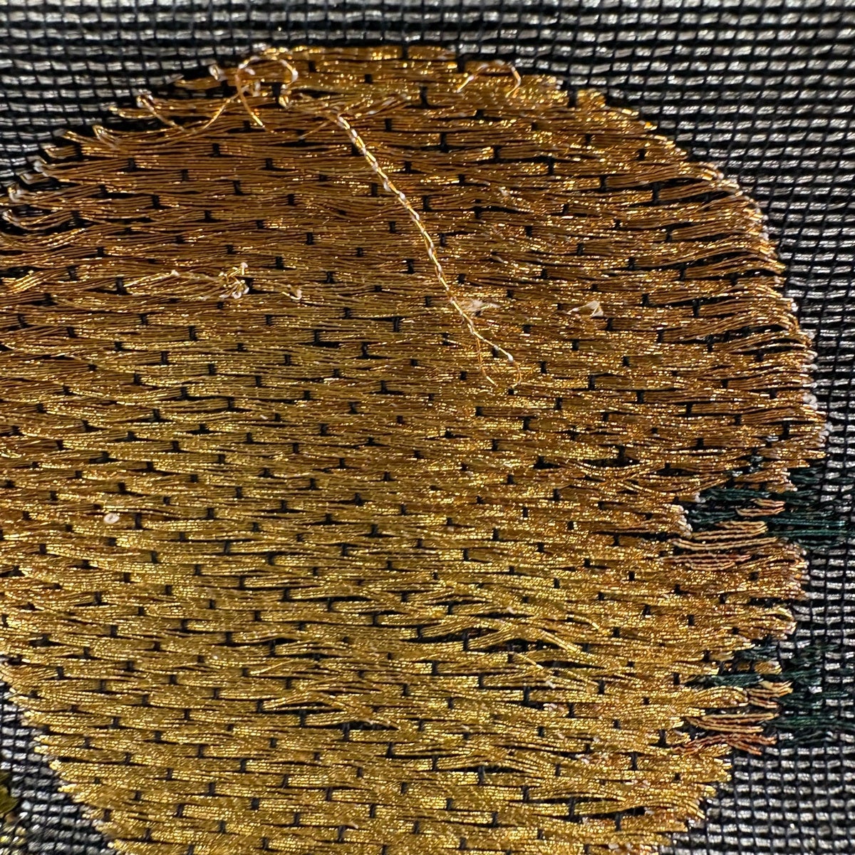 袋帯 秀品 笠松 藤 相良刺繍 箔 茶色 お太鼓柄 正絹