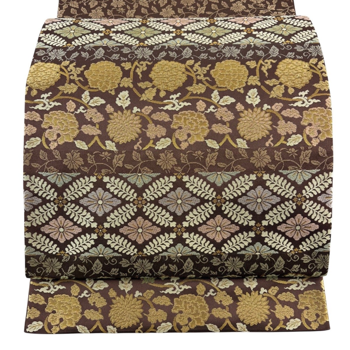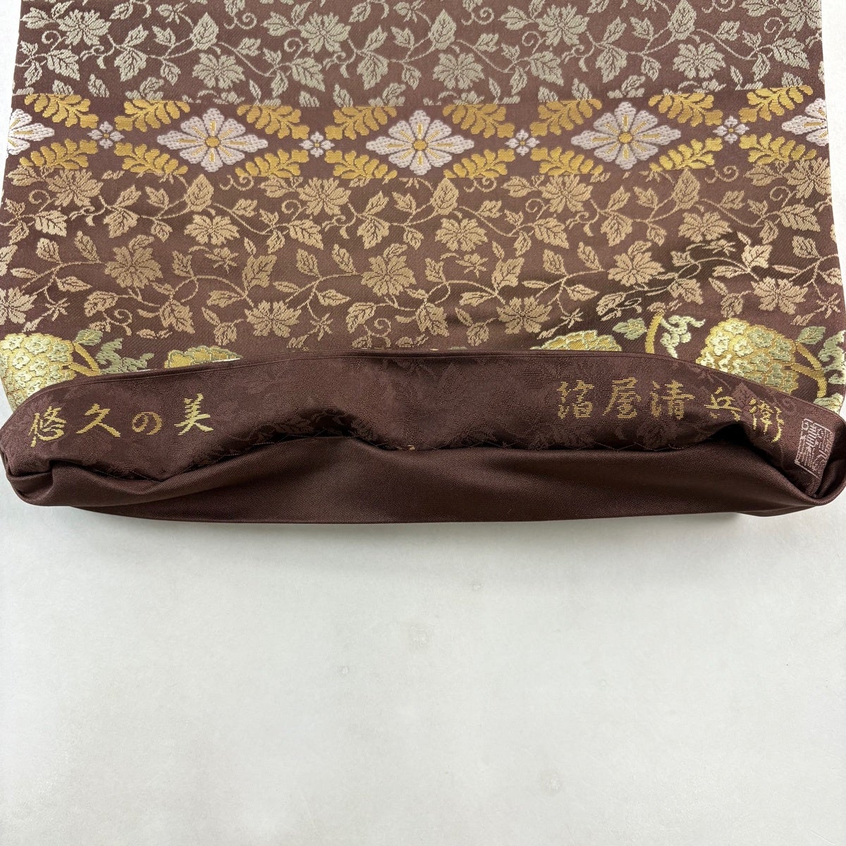 【在庫一掃】 【美品】 袋帯 名品 落款あり 本家加納 花菱 金銀糸 箔 茶色 六通 正絹
