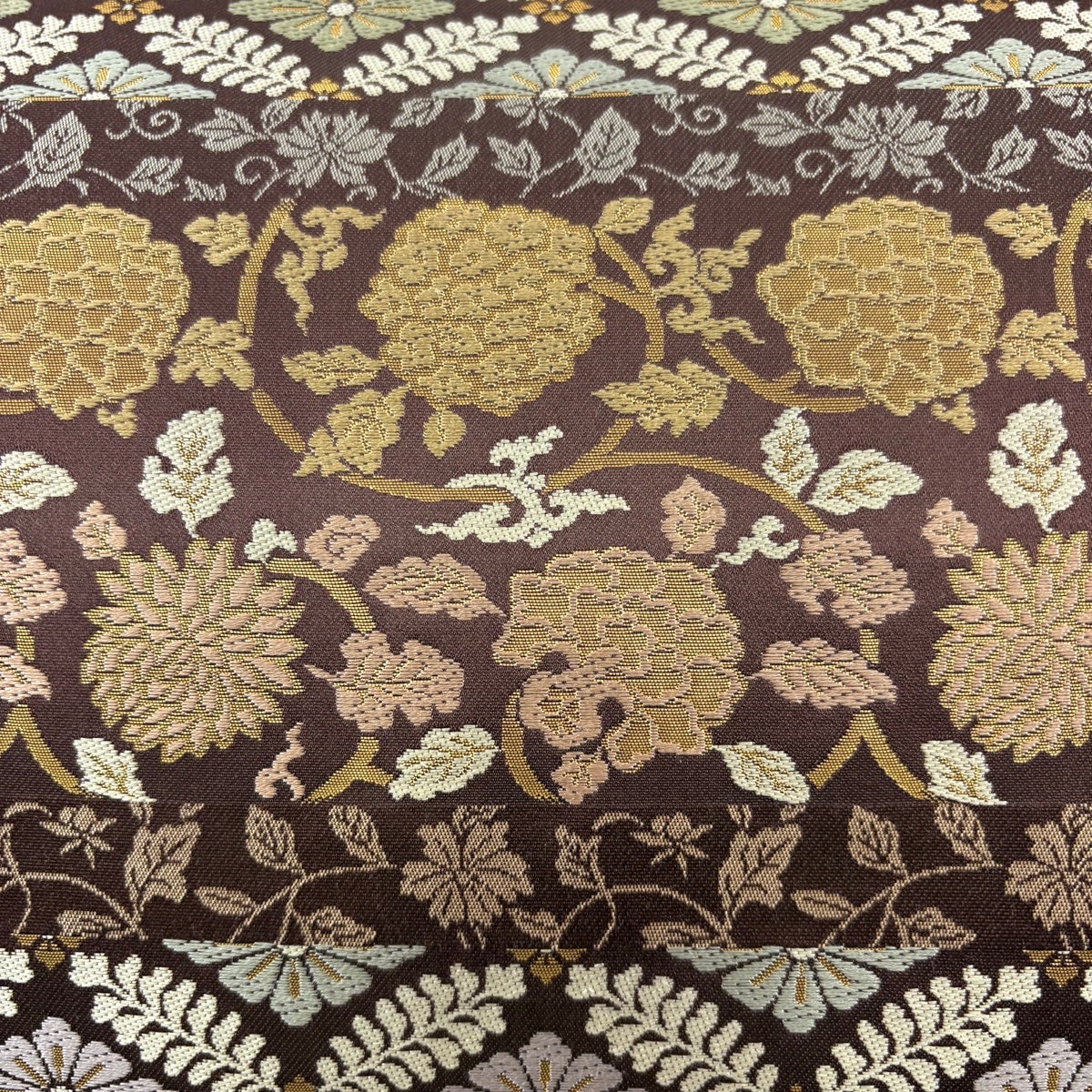【在庫一掃】 【美品】 袋帯 逸品 証紙あり 都 草花 松皮菱 金糸 箔 茶色 六通 正絹