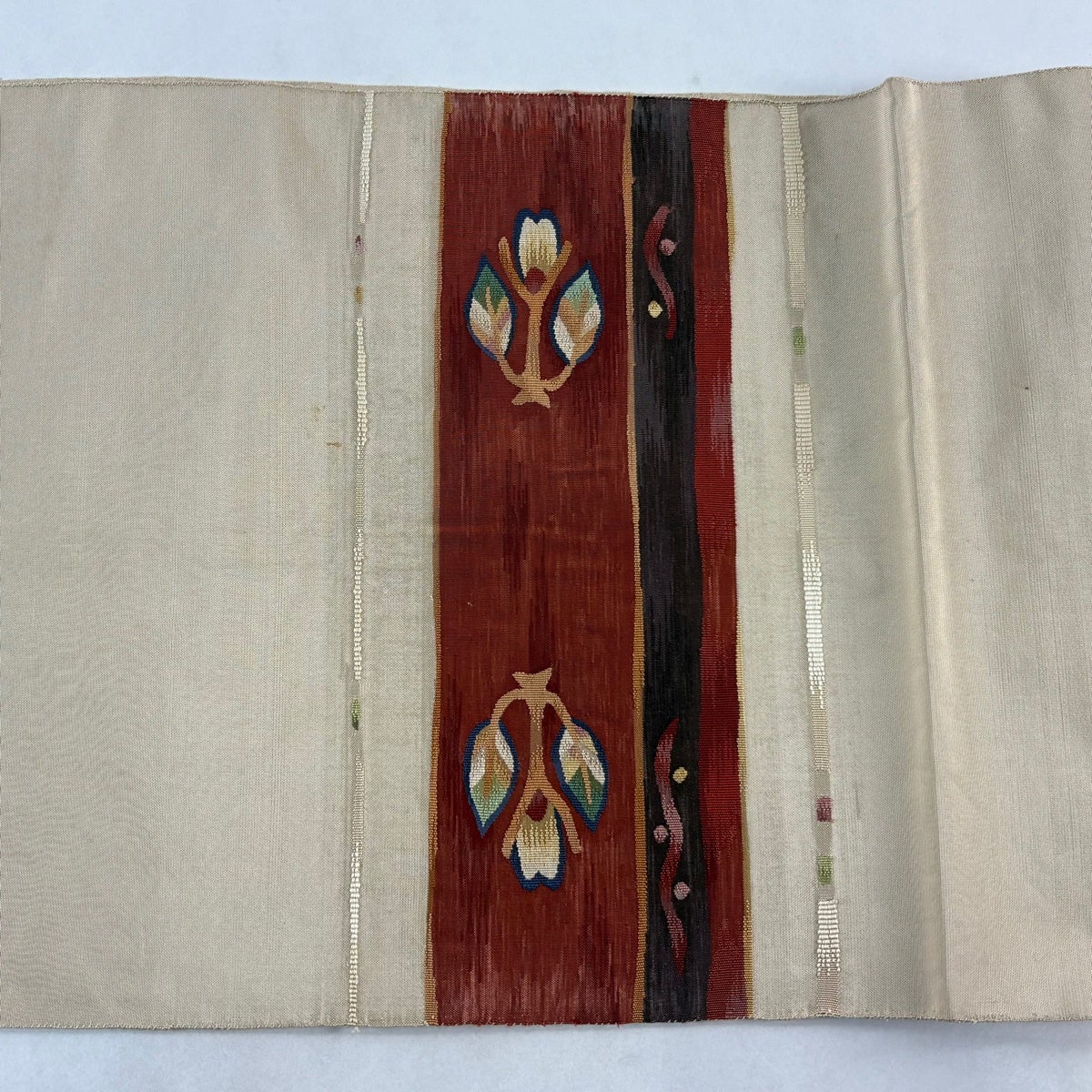 【美品】半幅帯 優品 草花 花唐草 薄茶色 化繊