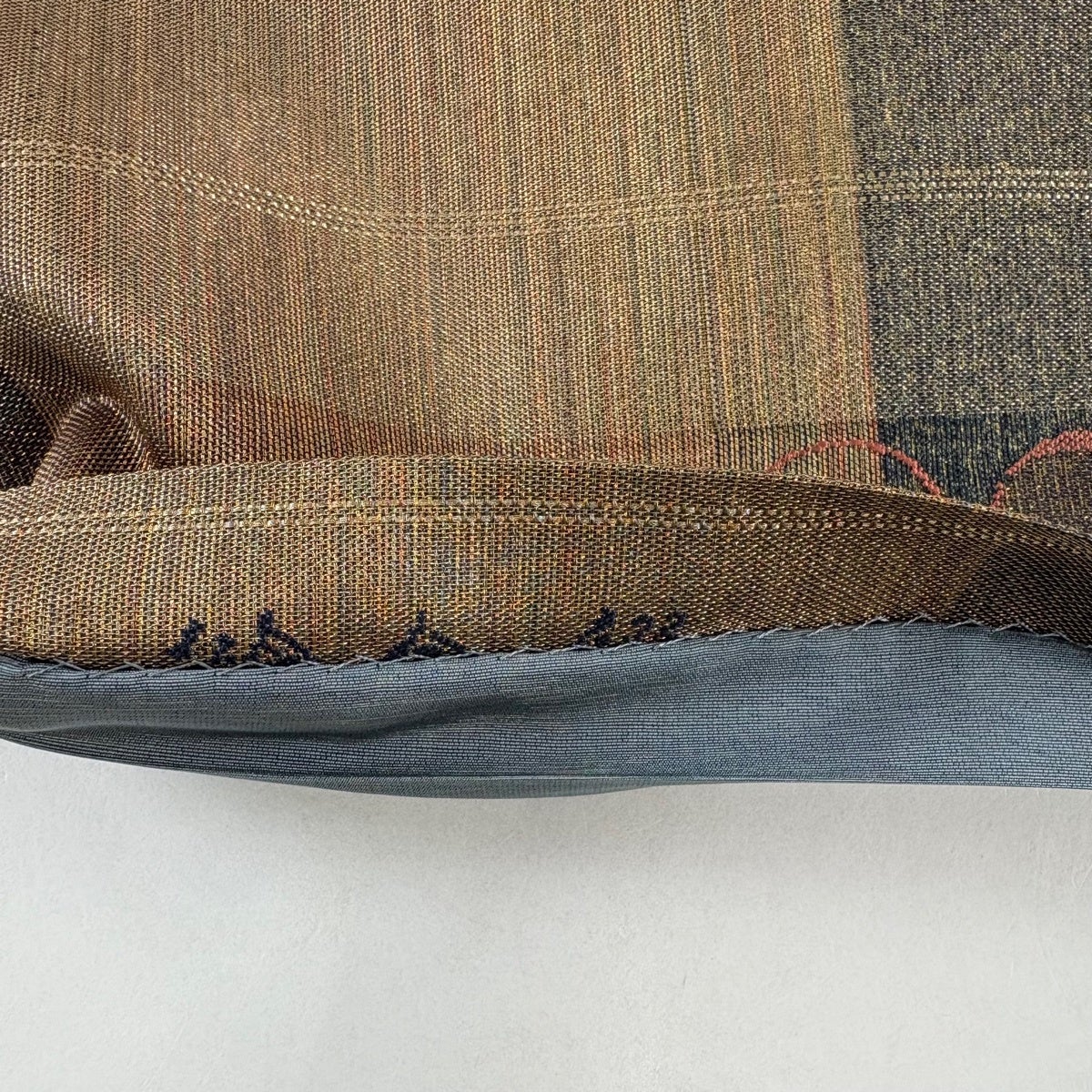 【美品】 袋帯 秀品 格子 縞 薄茶色 全通 正絹