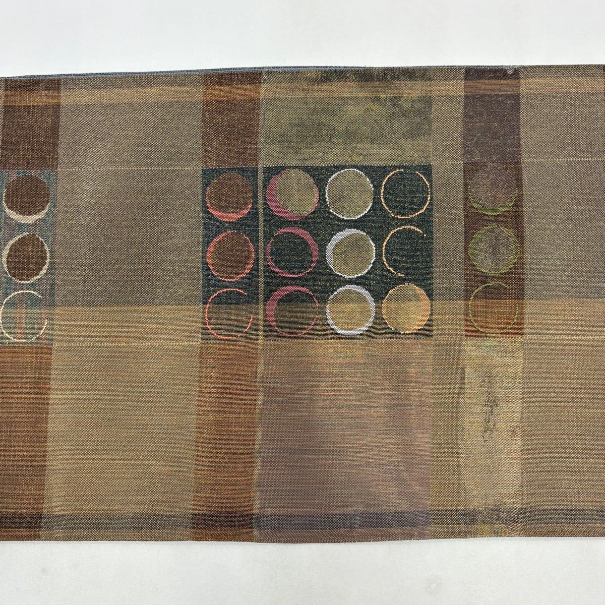 【美品】 袋帯 秀品 丸文 霞 焦茶色 六通 正絹