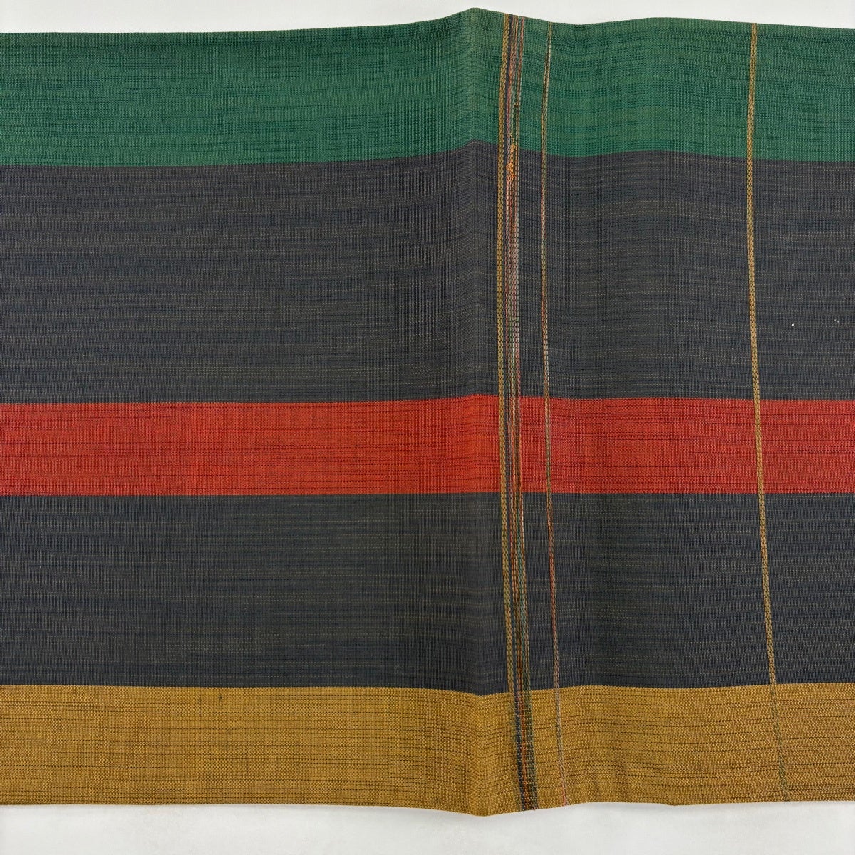 【美品】 袋帯 秀品 紬地 段縞 茶色 六通 正絹