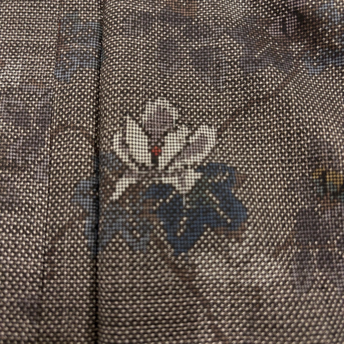 訪問着 身丈161.5cm 裄丈67cm M 袷 紬地 草花 焦茶色 正絹 秀品