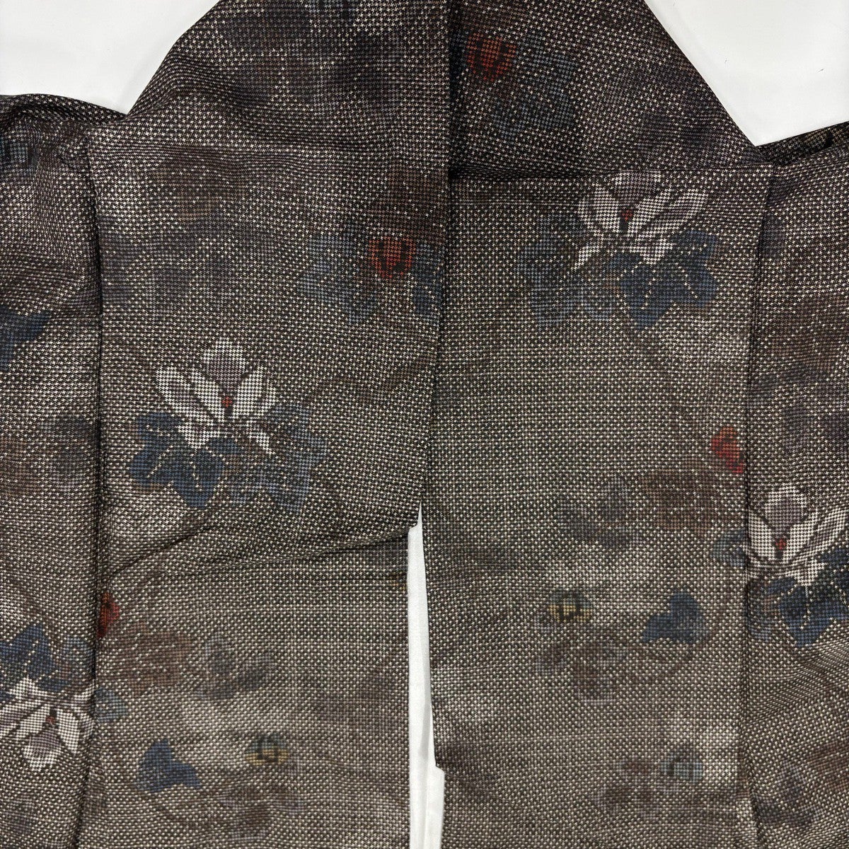 【美品】 紬 身丈154.5cm 裄丈62cm S 袷 草花 焦茶色 正絹 秀品