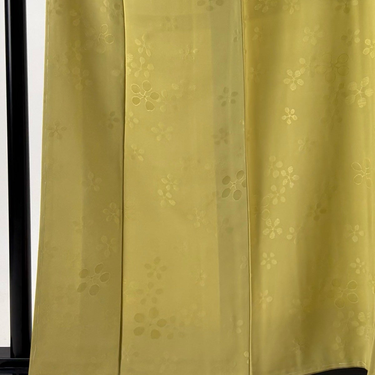 【美品】 色無地 身丈156.5cm 裄丈64.5cm M 袷 地紋 抹茶色 正絹 秀品