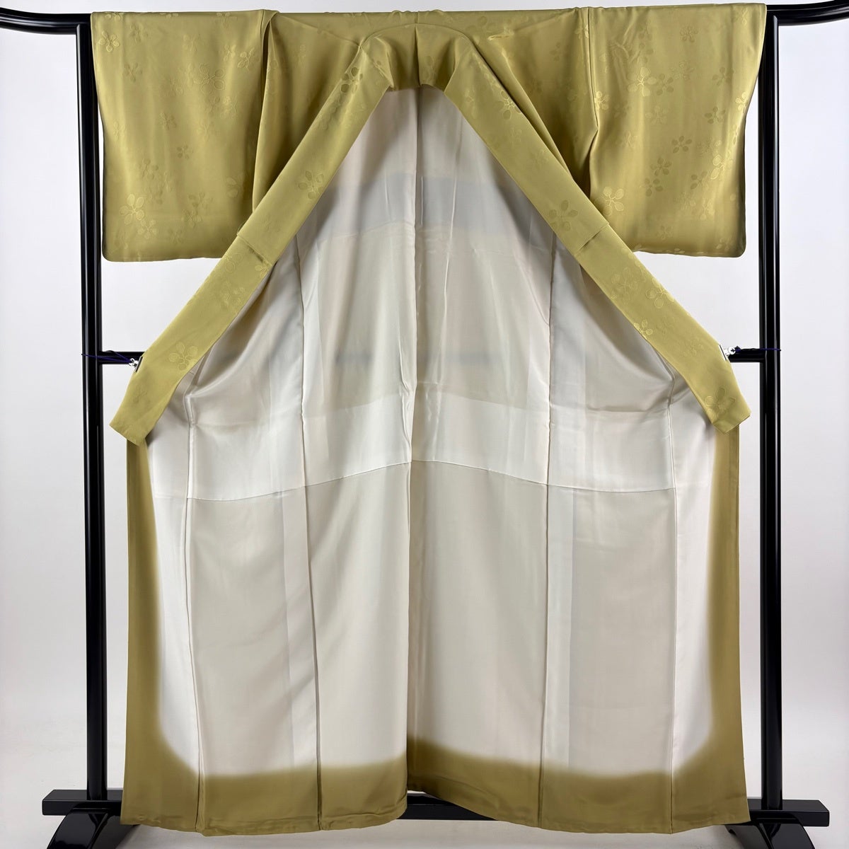 長襦袢 身丈124.5cm 裄丈63.5cm S 花柄 地紋 ぼかし 抹茶色 正絹 秀品
