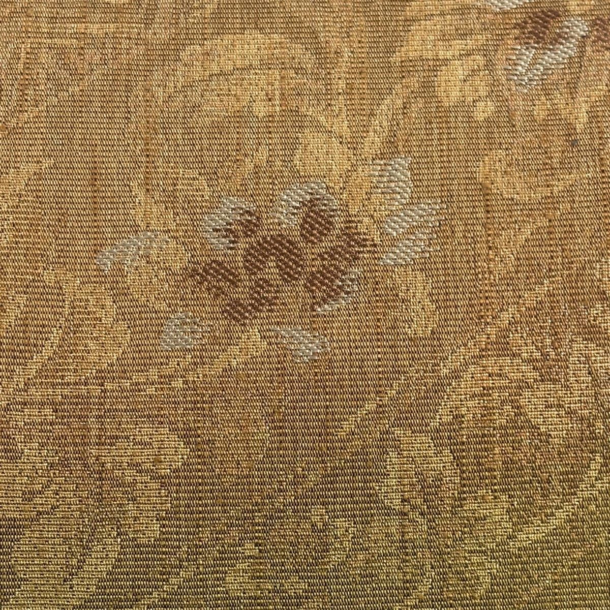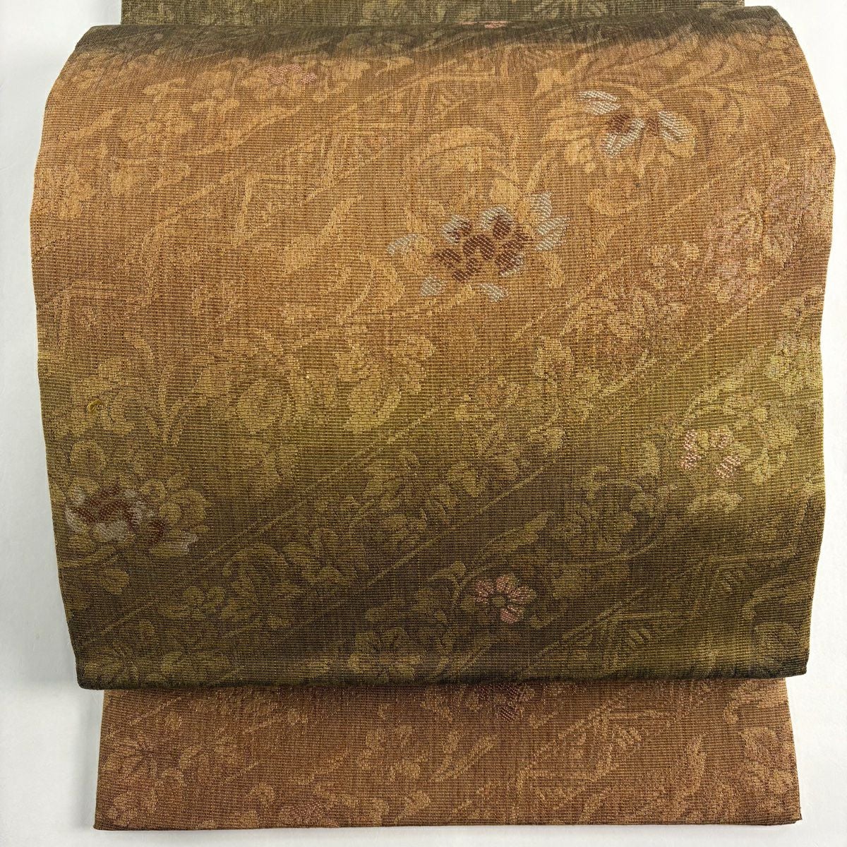 【美品】 袋帯 秀品 菊 草花 唐織 箔 茶色 六通 正絹