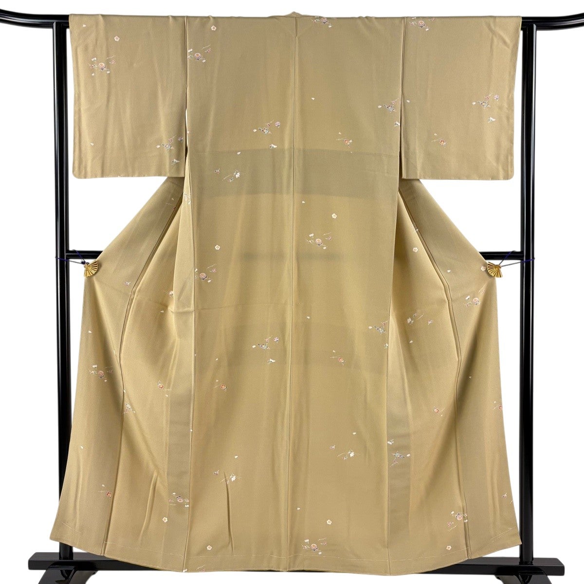 訪問着 身丈158.5cm 裄丈65cm M 袷 桐 葡萄 金彩 絞り 薄茶色 正絹 秀品