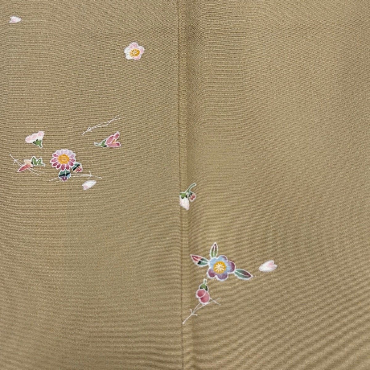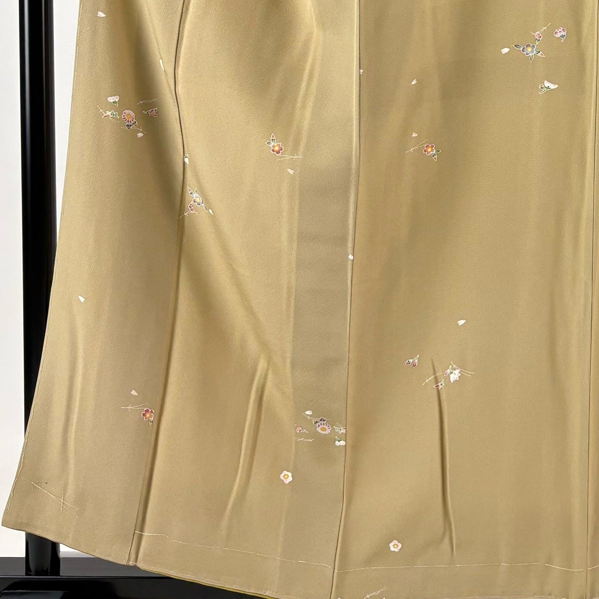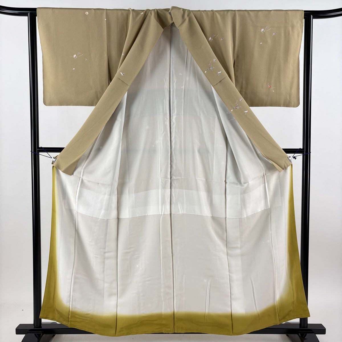 付下げ 身丈162cm 裄丈68cm L 袷 草花 金銀彩 ぼかし 山吹茶色 正絹 秀品