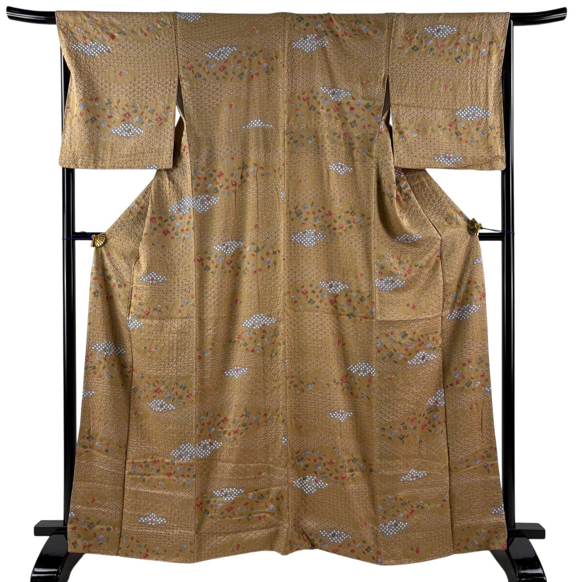 付下げ 身丈157cm 裄丈64.5cm M 袷 扇 波頭 金糸 金彩 山吹茶色 正絹 秀品