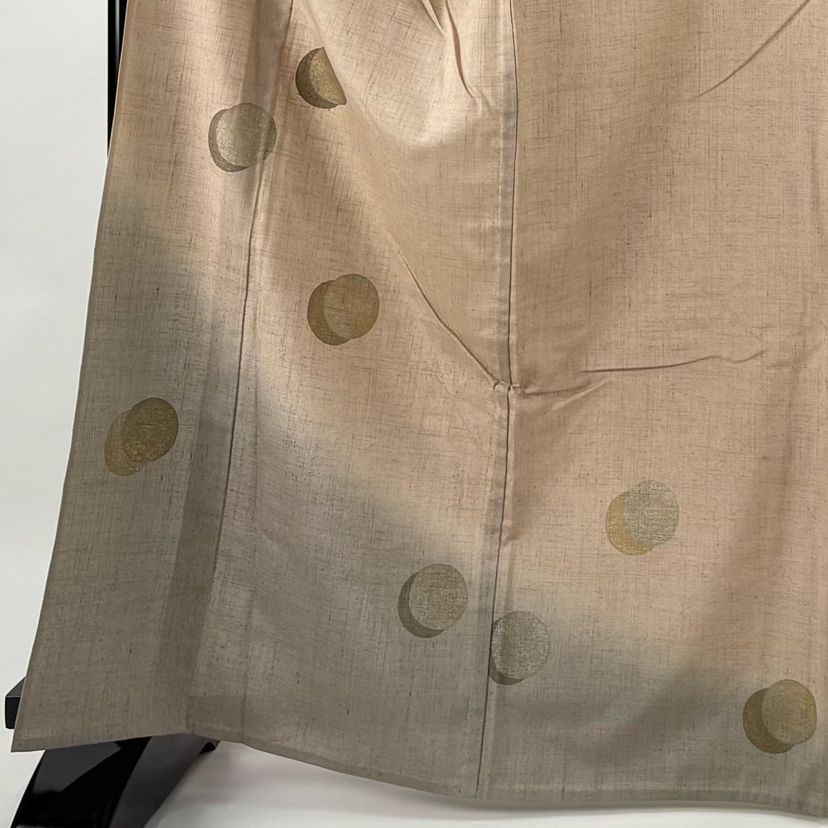 付下げ 身丈154cm 裄丈63.5cm S 薄物 夏紬地 丸文 草花 絞り 薄茶色 正絹 名品