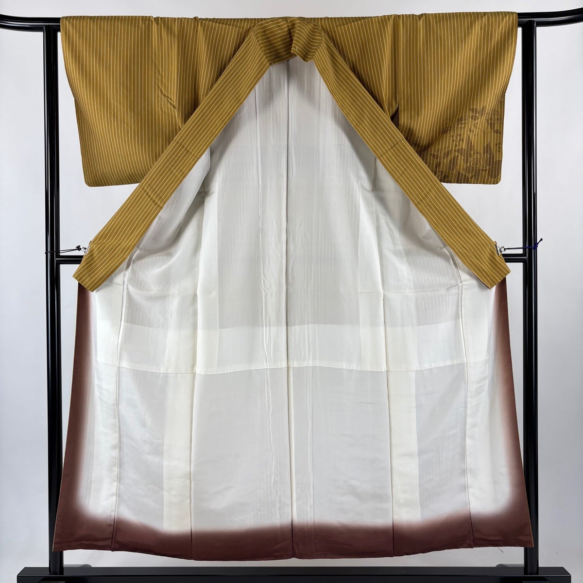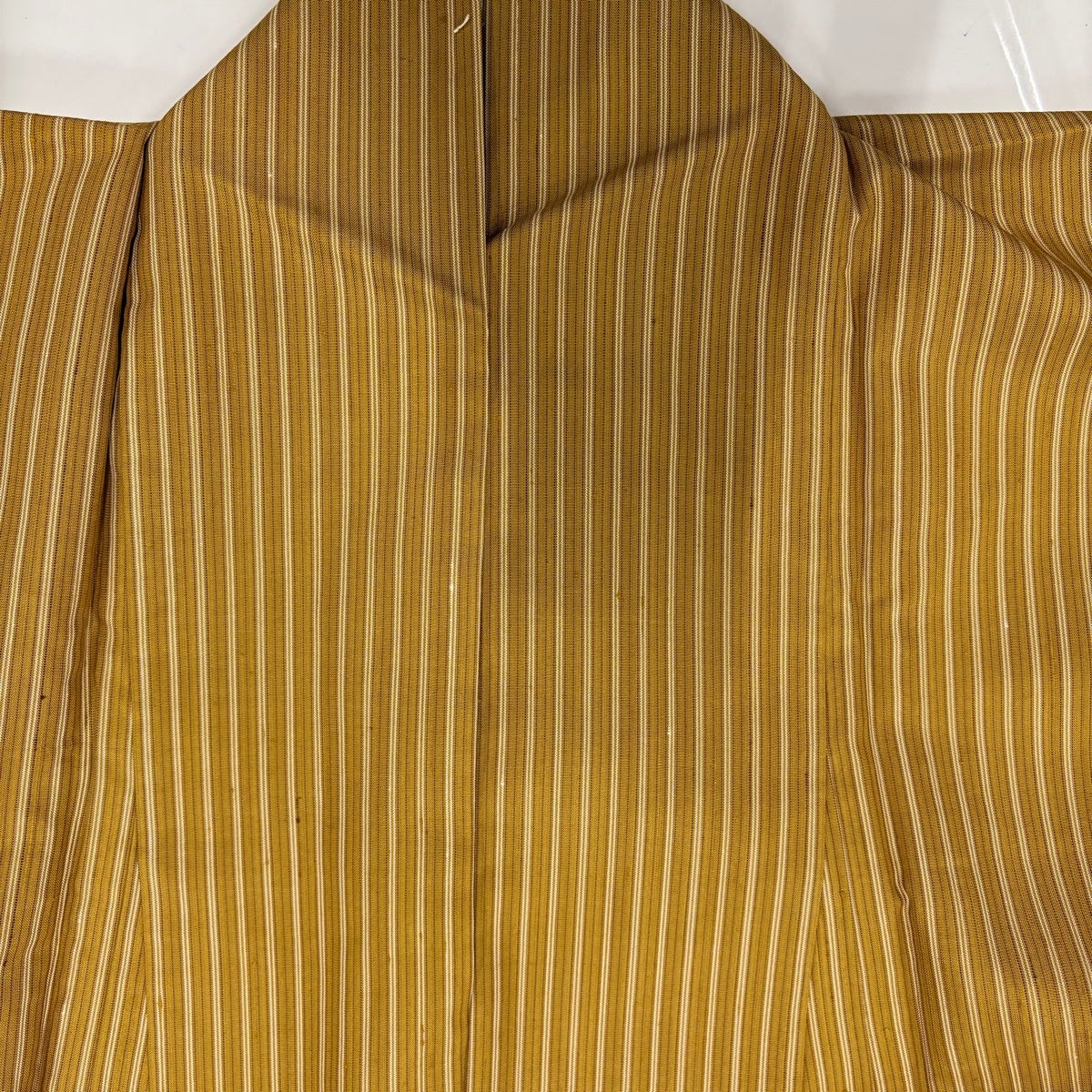 付下げ 身丈162cm 裄丈64cm M 袷 箔散らし 縦縞 金糸 ぼかし 山吹茶色 正絹 秀品