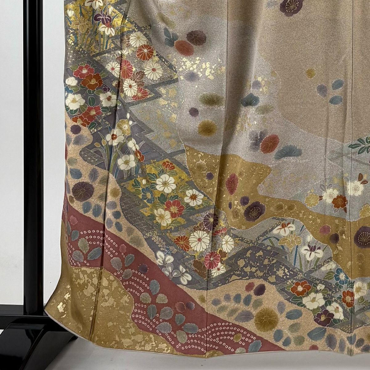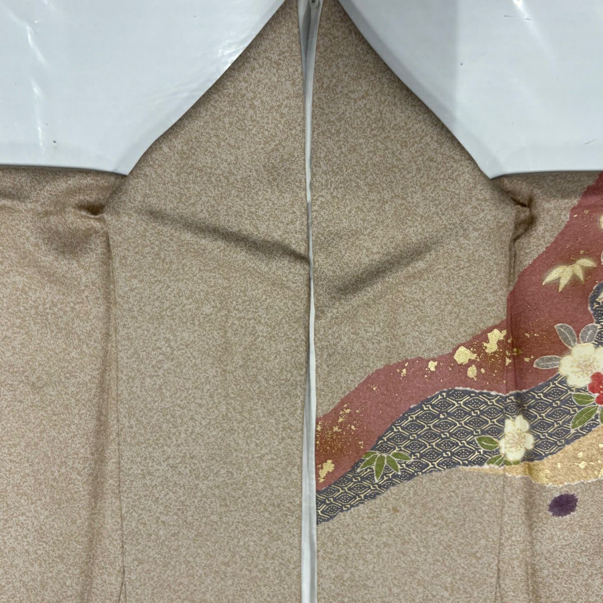 付下げ 身丈162cm 裄丈67.5cm L 袷 ますいわ屋 草花 鶴 金糸 金彩 薄茶色 正絹 秀品