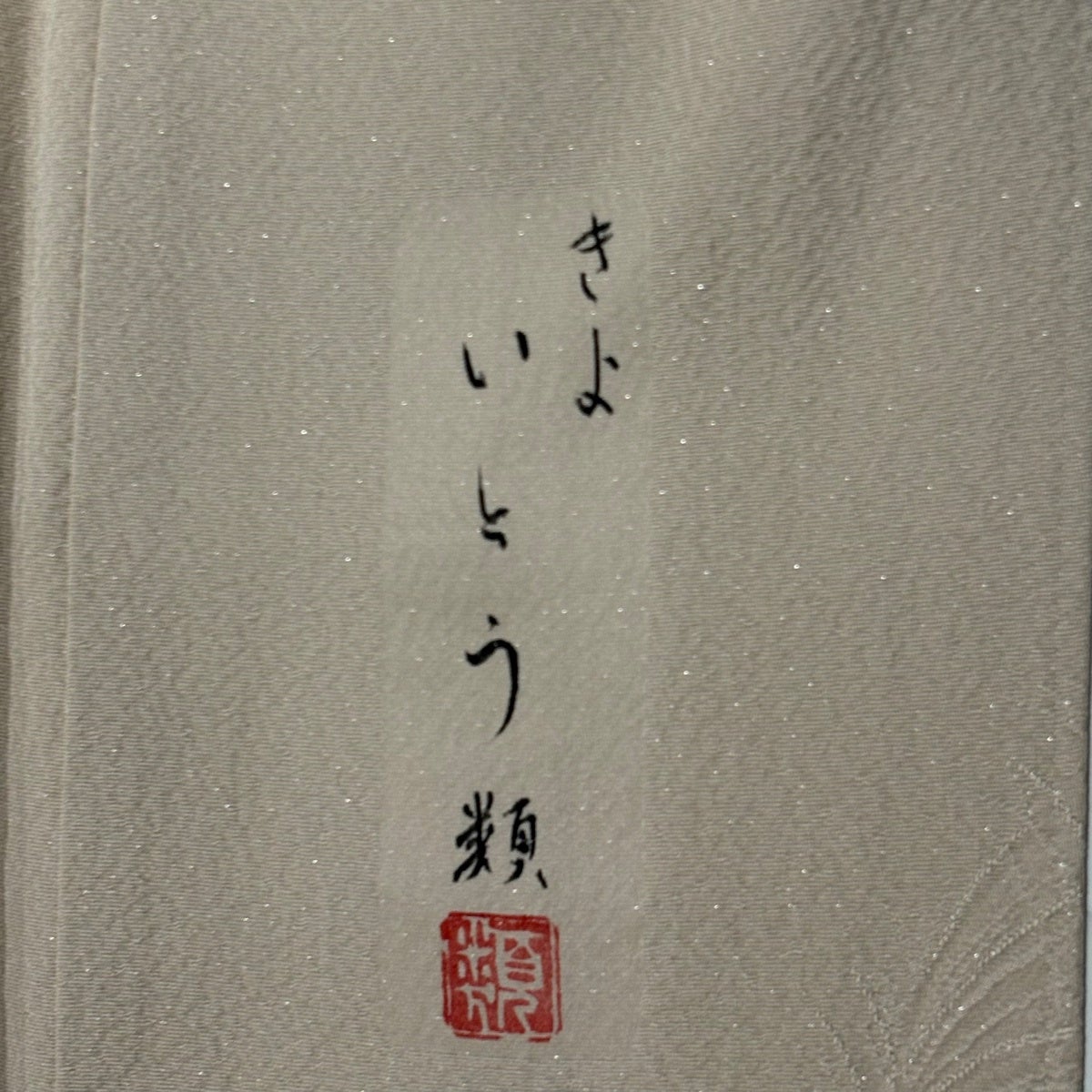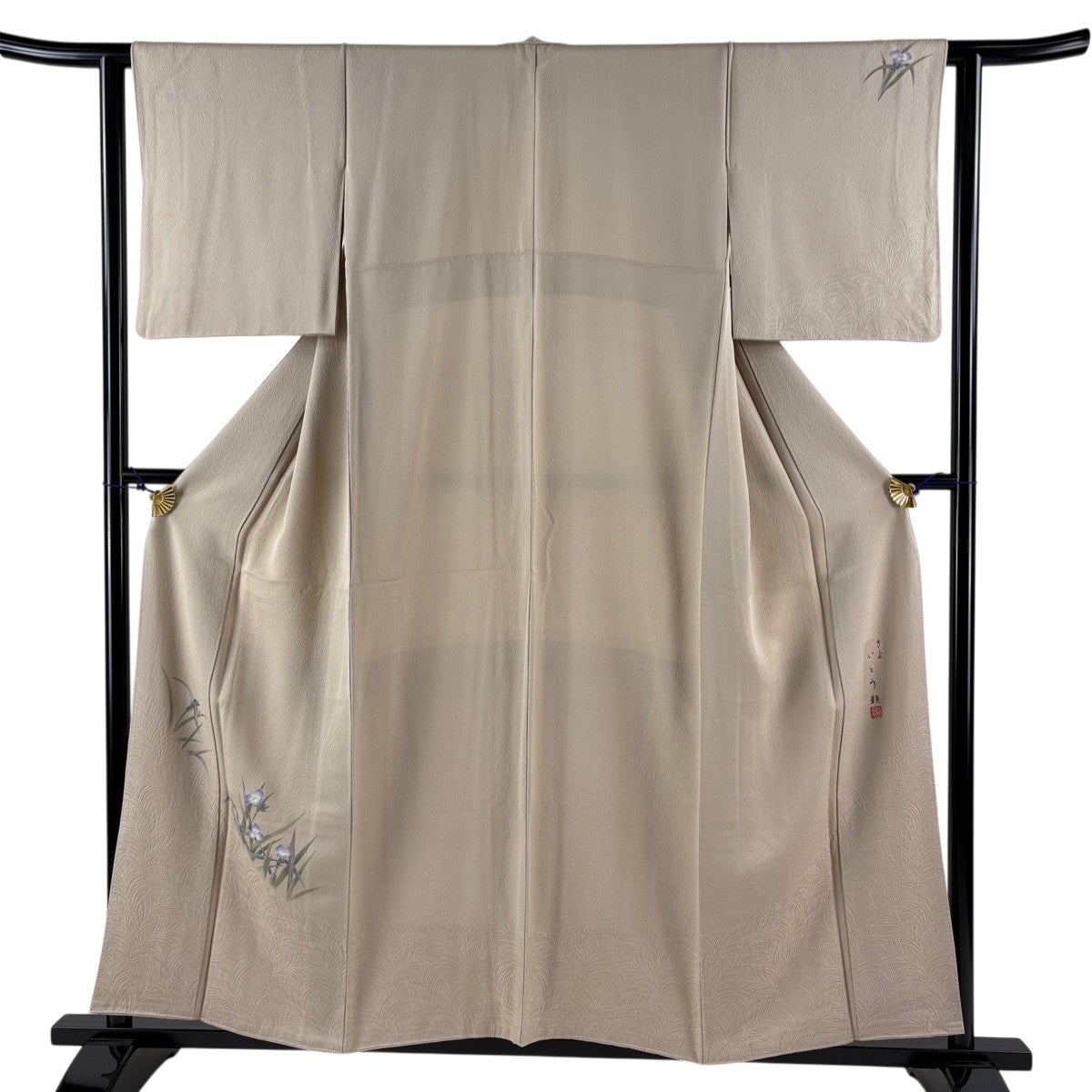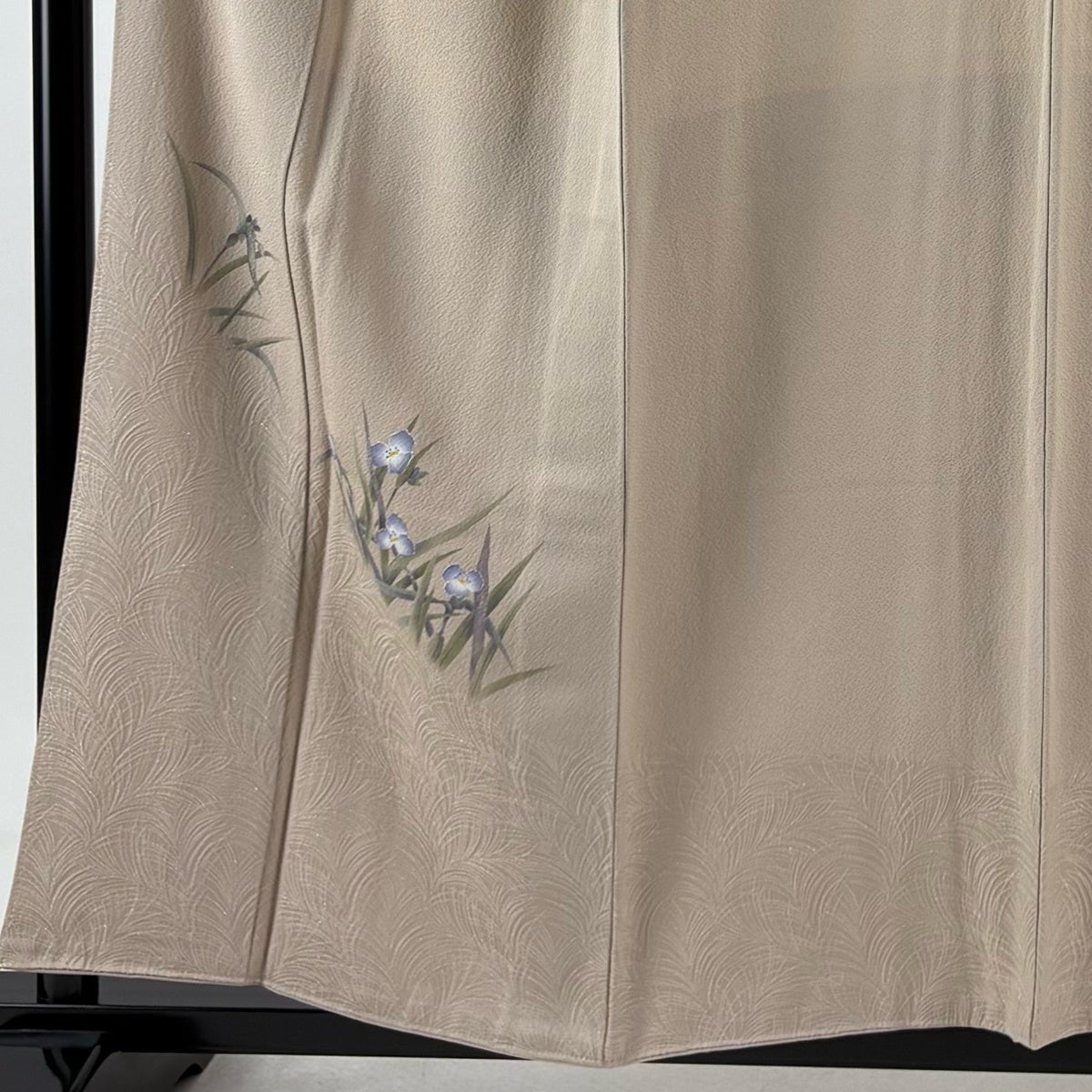 付下げ 身丈151.5cm 裄丈63.5cm S 袷 ますいわ屋 落款あり 草花 尾長鳥 刺繍 金糸 薄茶色 正絹 秀品