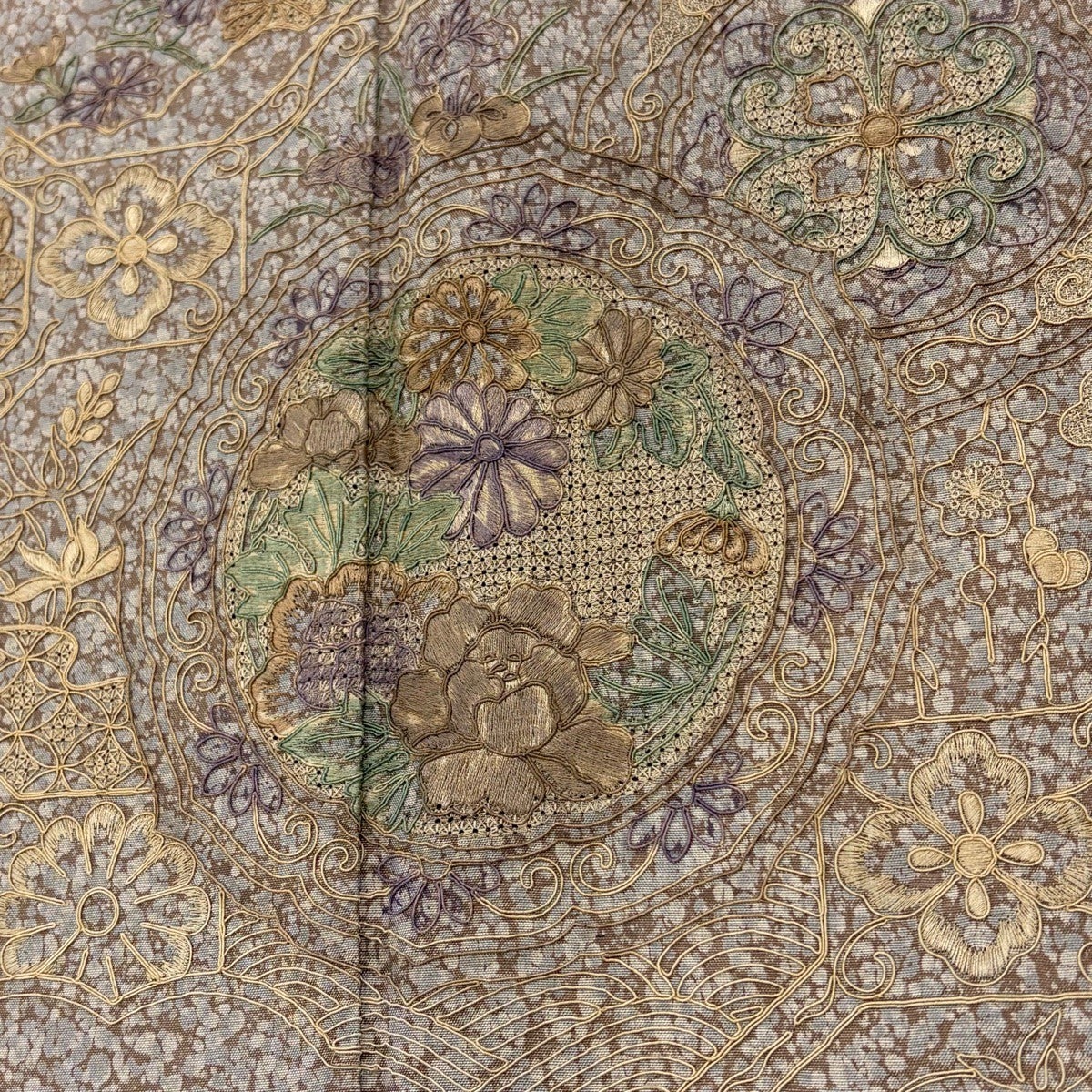 【美品】 道行 身丈112.5cm 裄丈63.5cm S 和装コート 千代田衿 草花 光悦垣 刺繍 薄茶色 正絹 名品