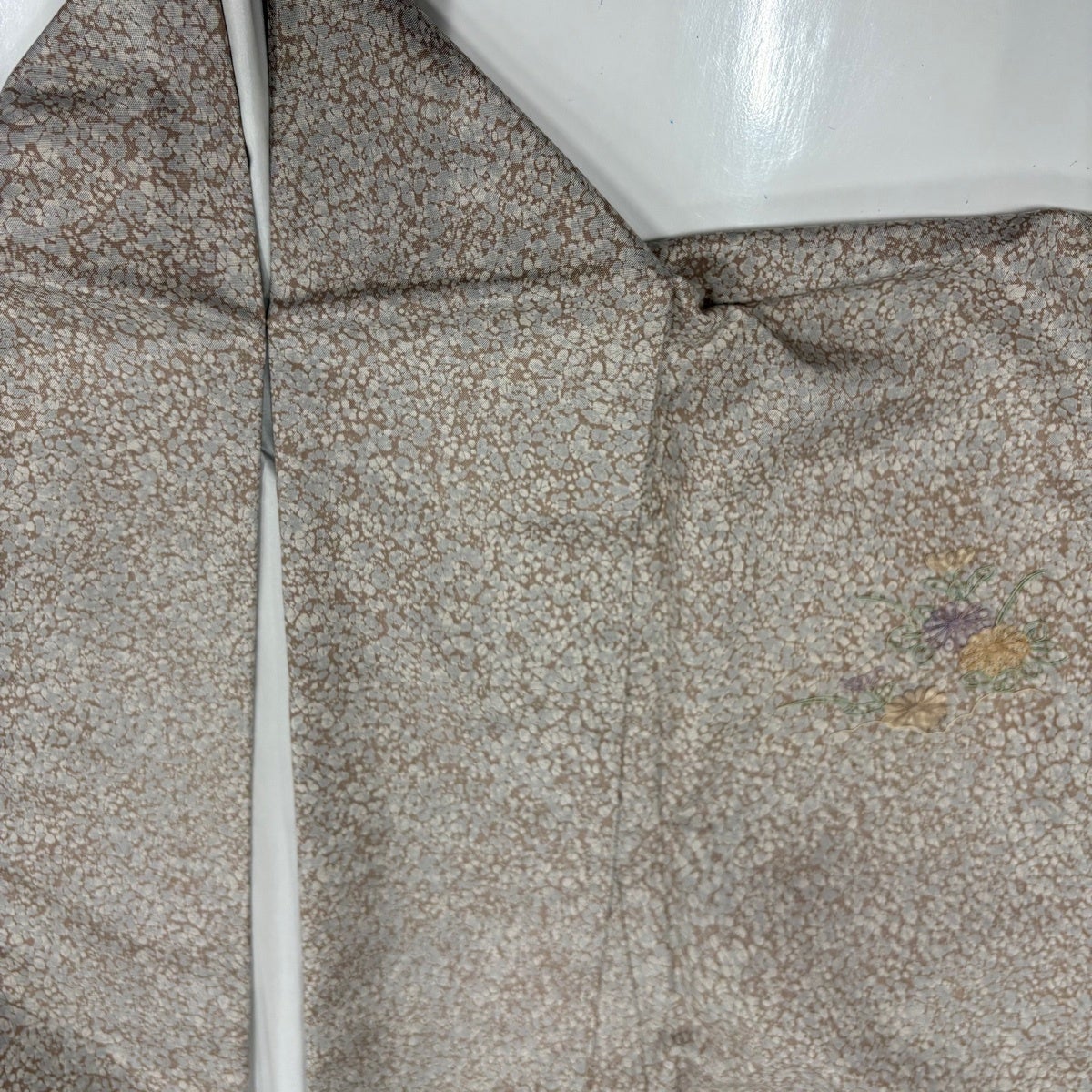 【在庫一掃】 【美品】 小紋 身丈156.5cm 裄丈65.5cm M 袷 紬地 幾何学模様 ぼかし 薄茶色 正絹 名品