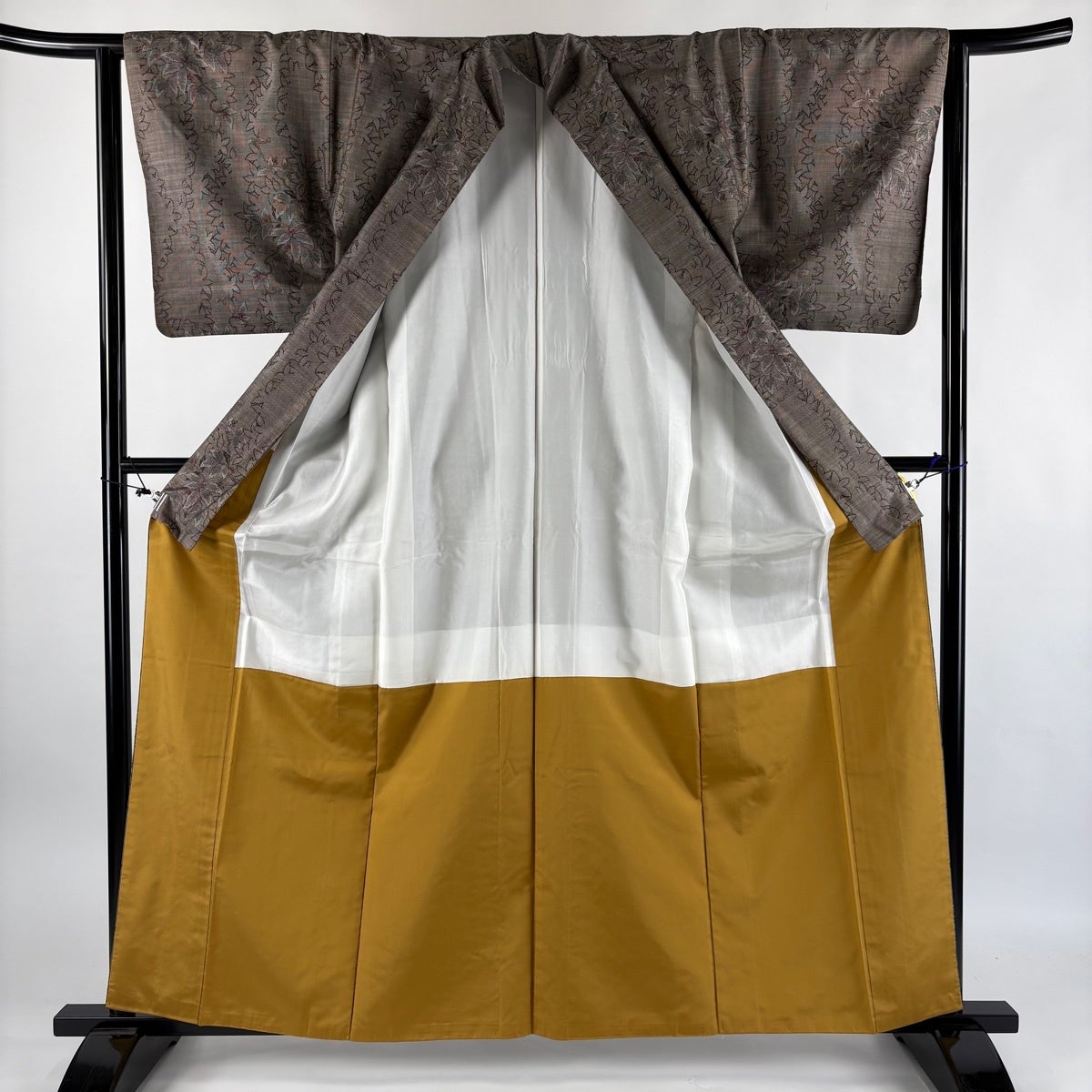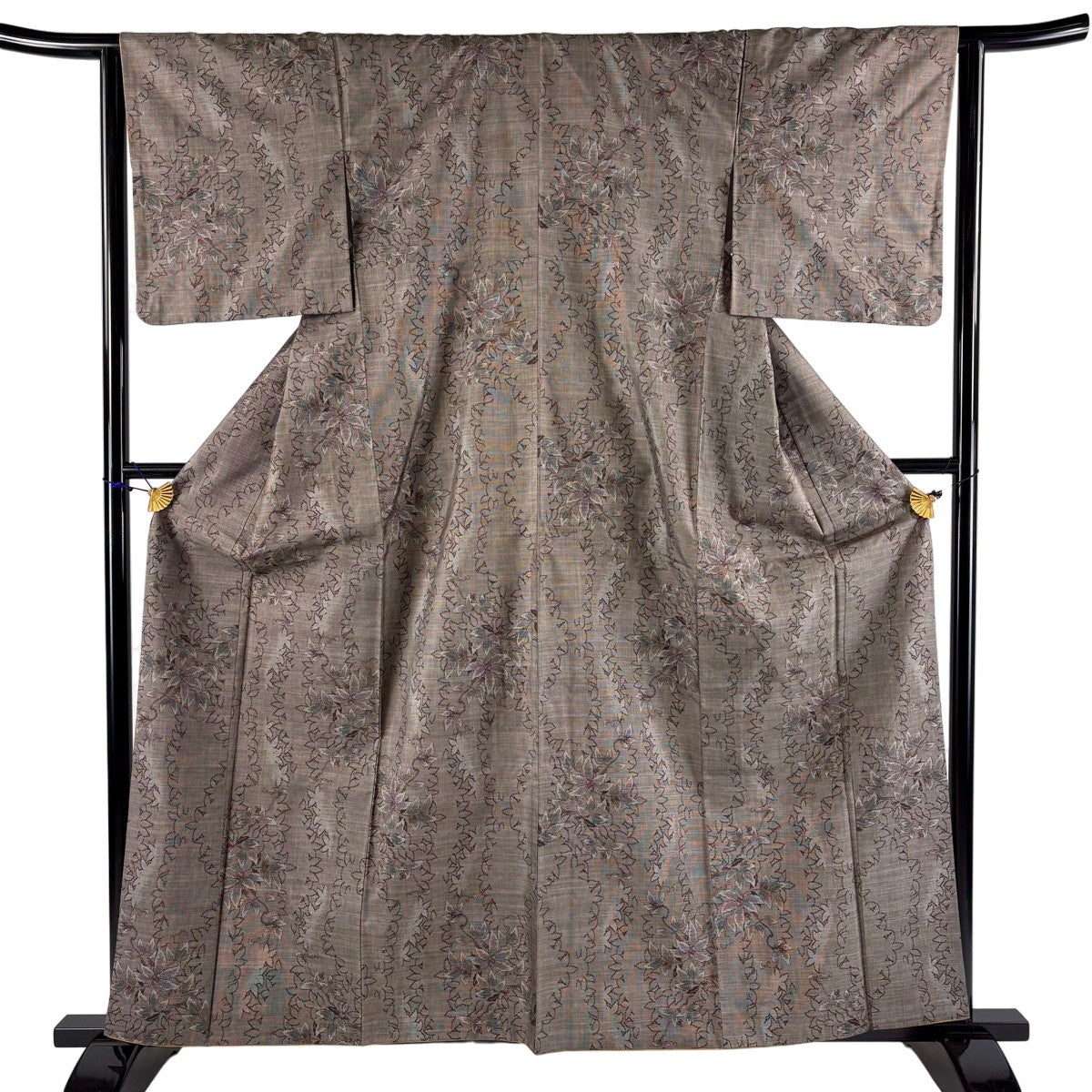 付下げ 身丈168cm 裄丈64cm M 袷 扇 霞 金糸 金彩 茶色 正絹 秀品