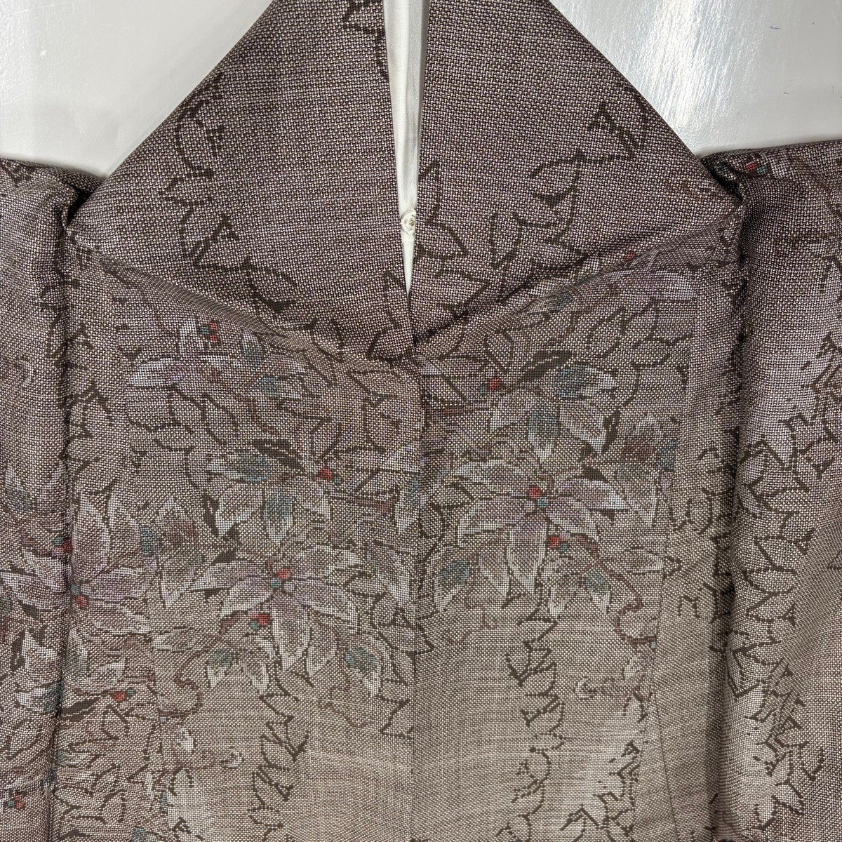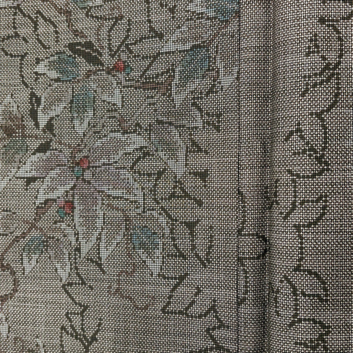 【美品】 小紋 身丈159.5cm 裄丈61.5cm S 袷 草花 茶色 正絹 優品