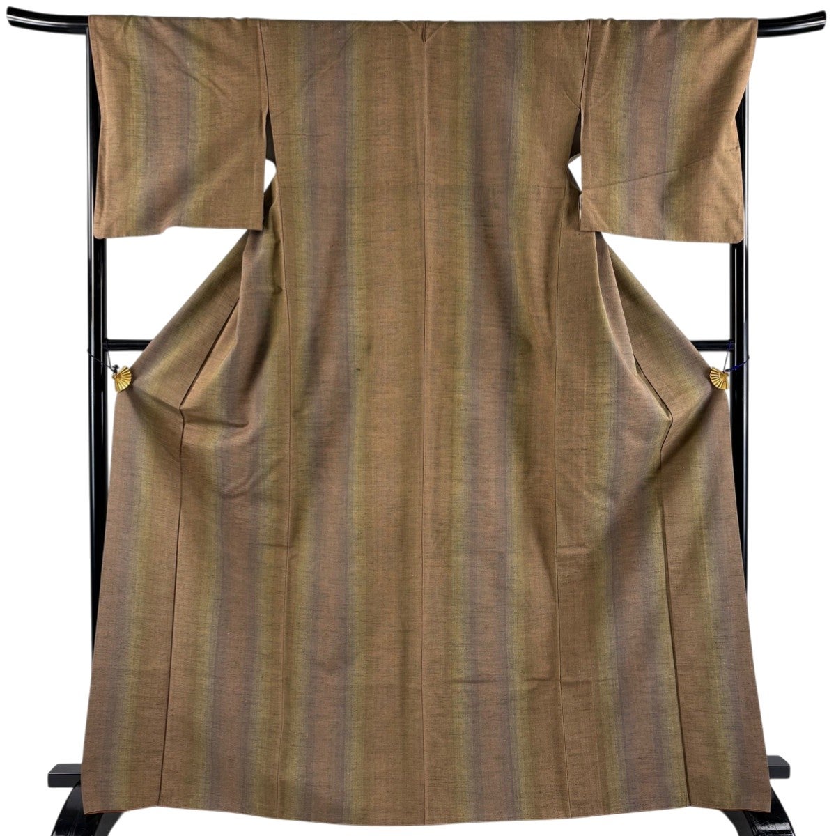 【美品】 紬 身丈161cm 裄丈62.5cm S 袷 縦縞 茶色 正絹 秀品