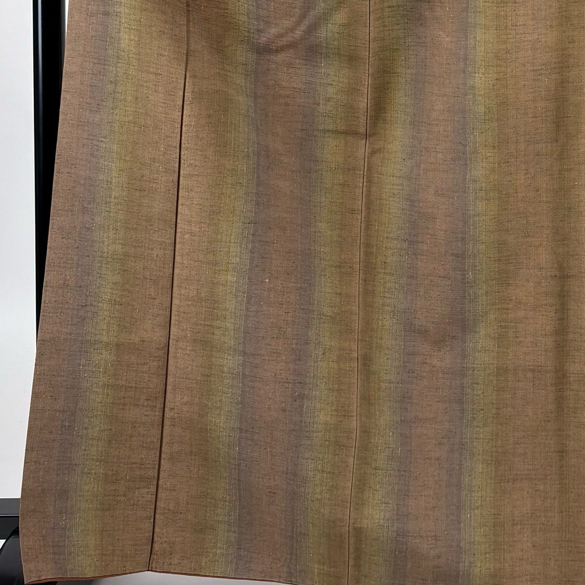 【美品】 小紋 身丈166cm 裄丈66cm M 袷 縦縞 地紋 茶色 正絹 秀品