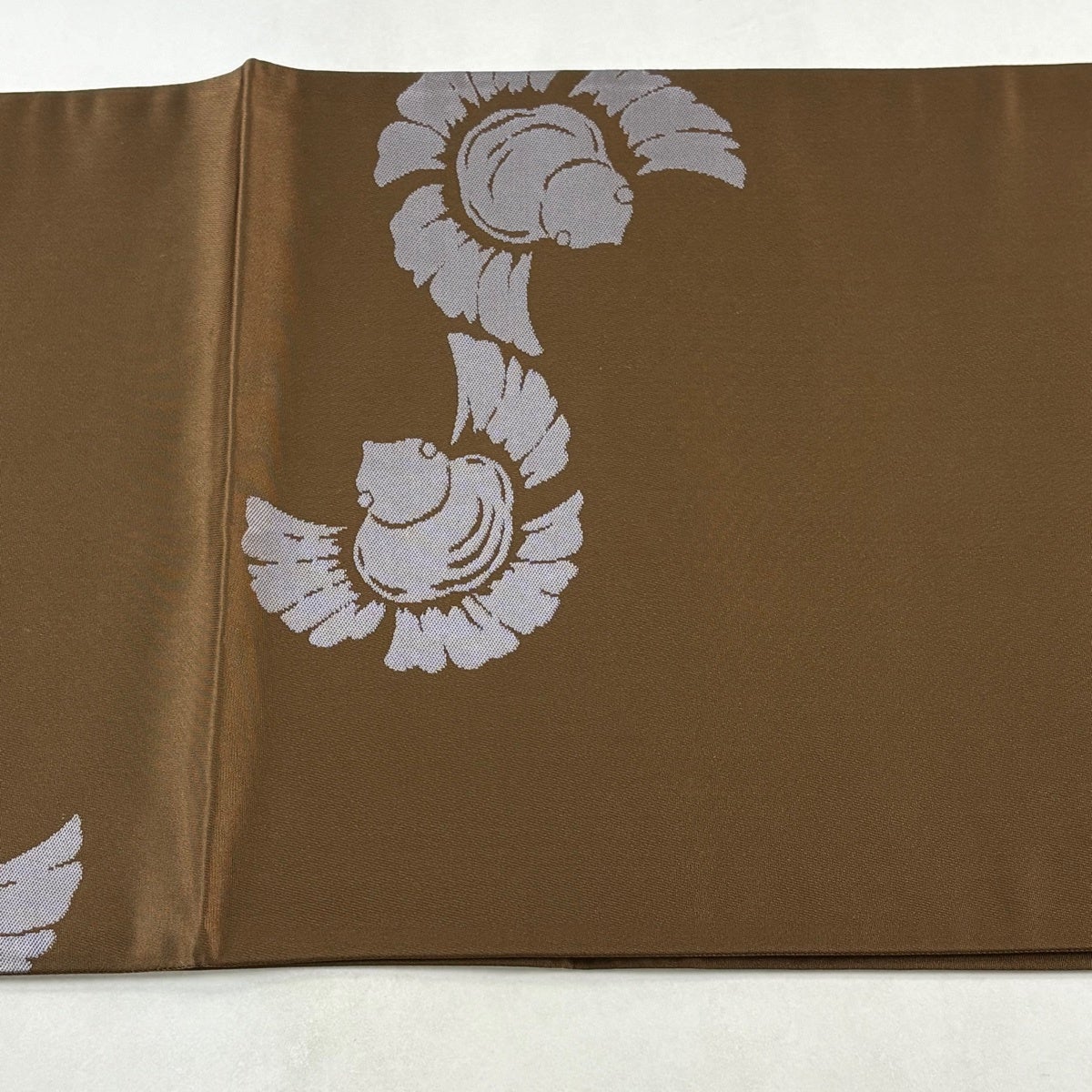 袋帯 逸品 北出与三郎 落款あり 光琳菊流水文錦 金糸 箔 茶色 六通 正絹