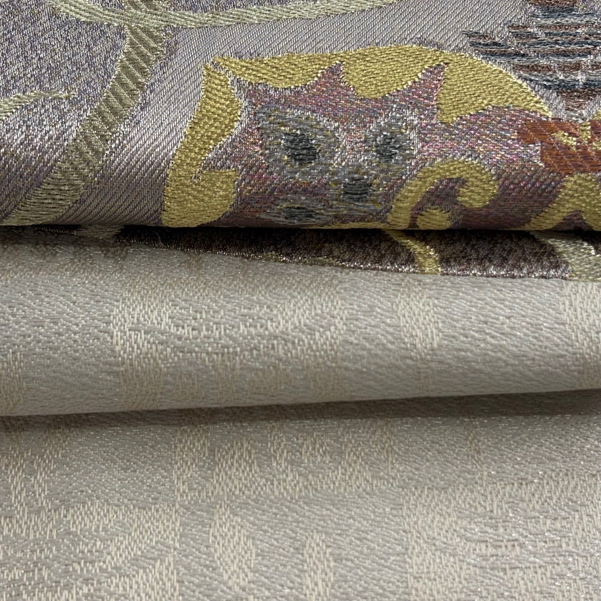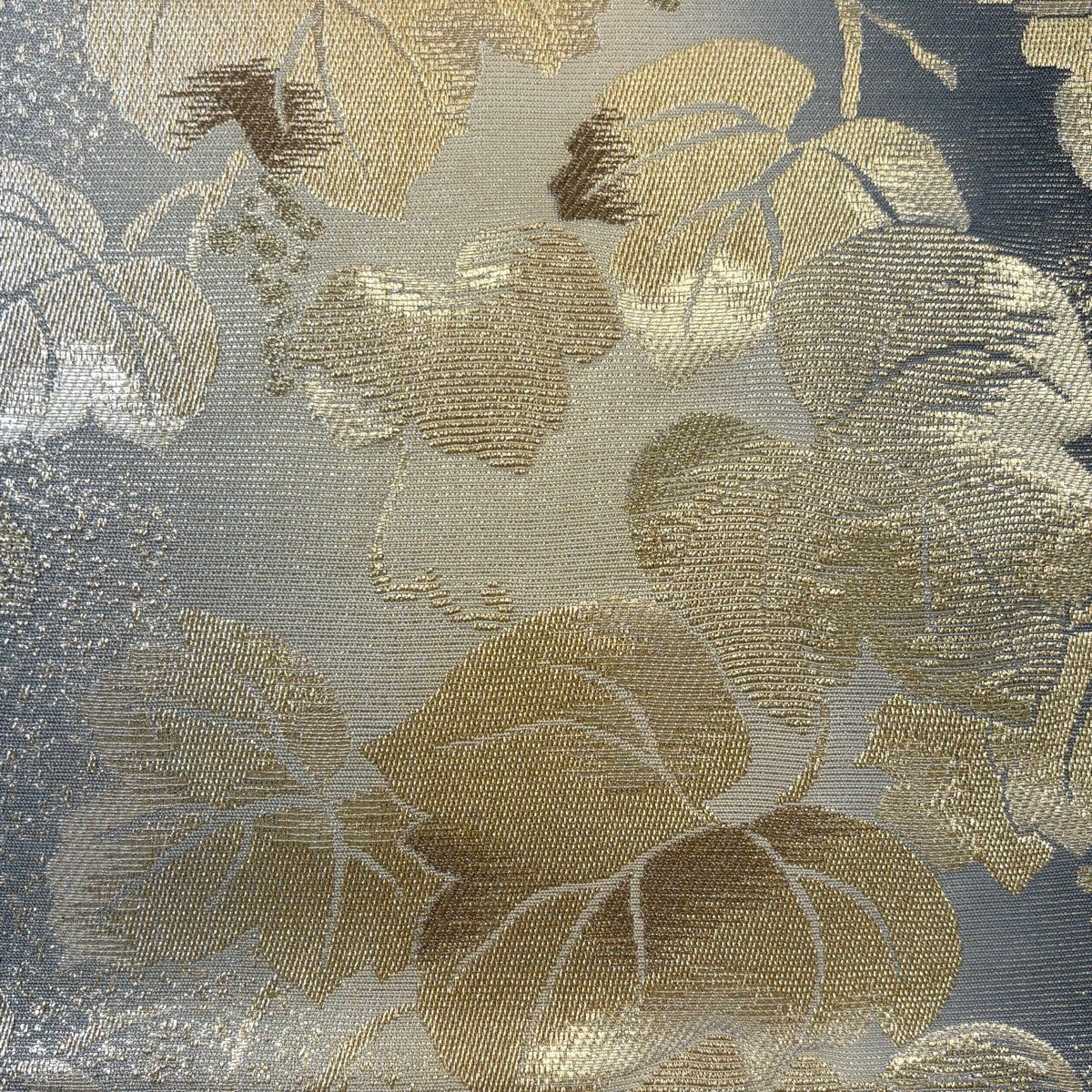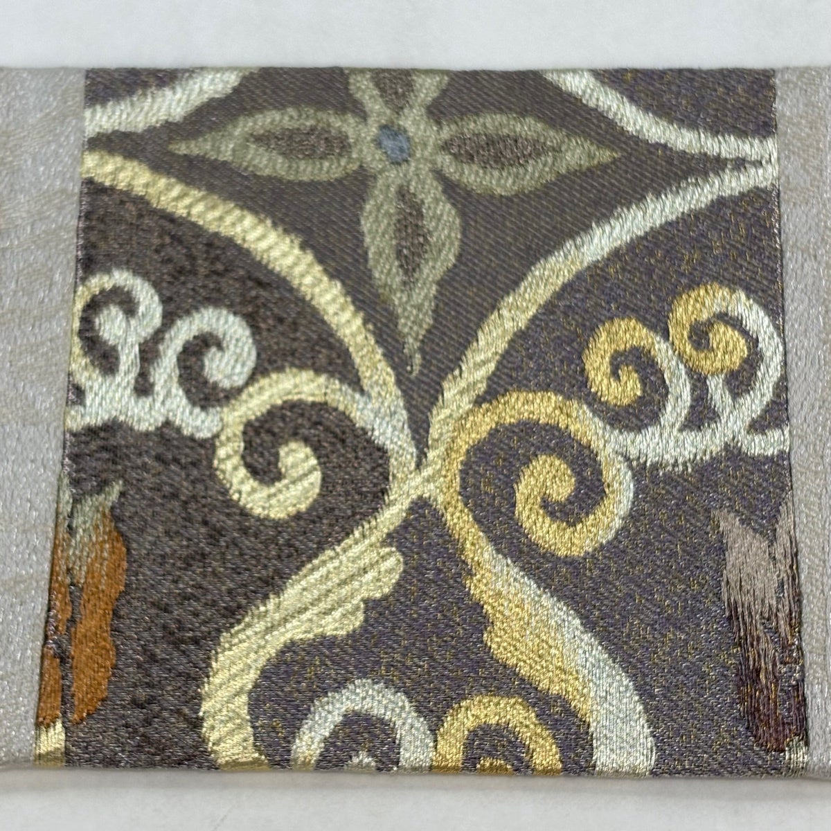 【美品】 名古屋帯 逸品 華文 葡萄 箔 銀糸 灰色 正絹