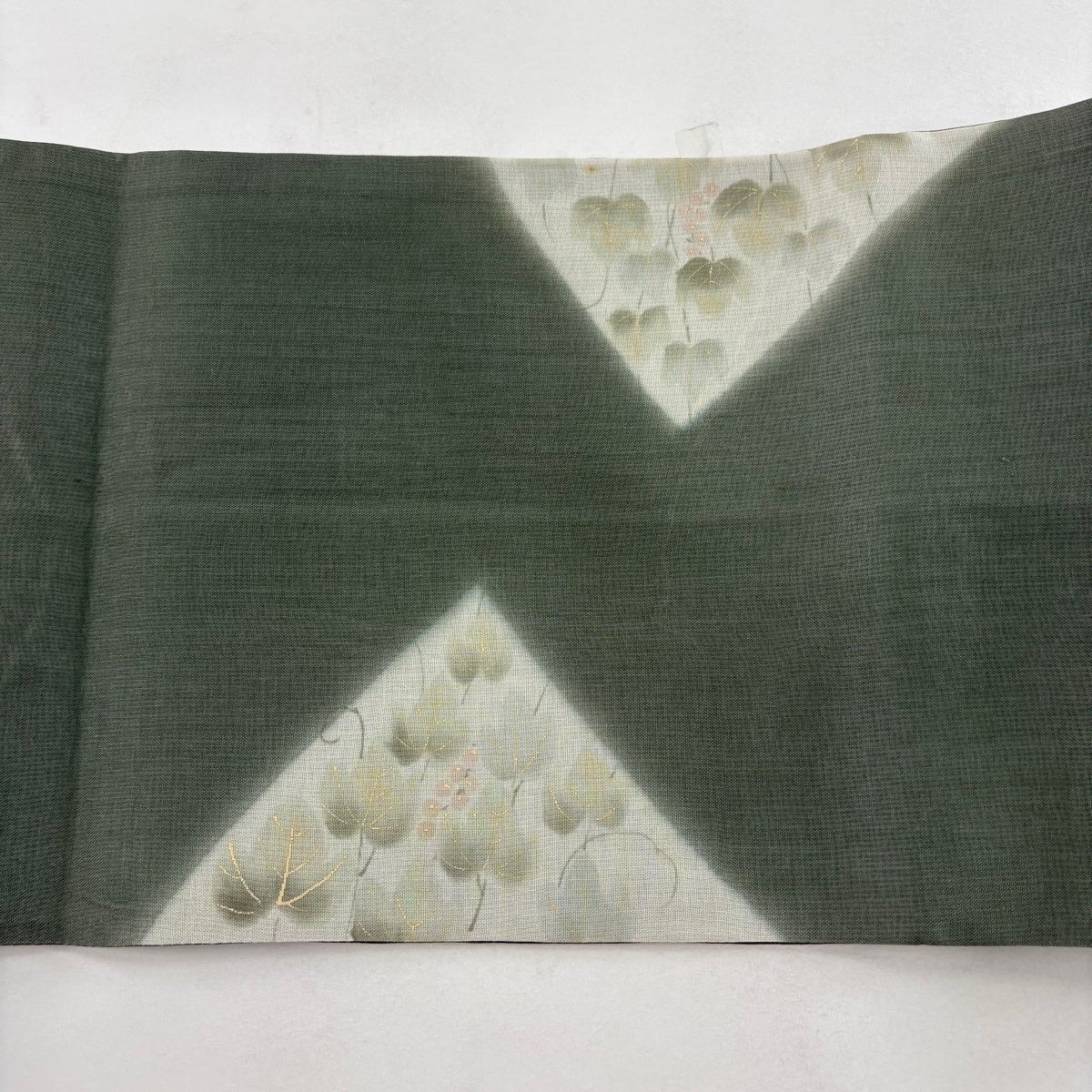 袋帯 秀品 夏帯 葡萄 金彩 ぼかし 灰緑 お太鼓柄 正絹