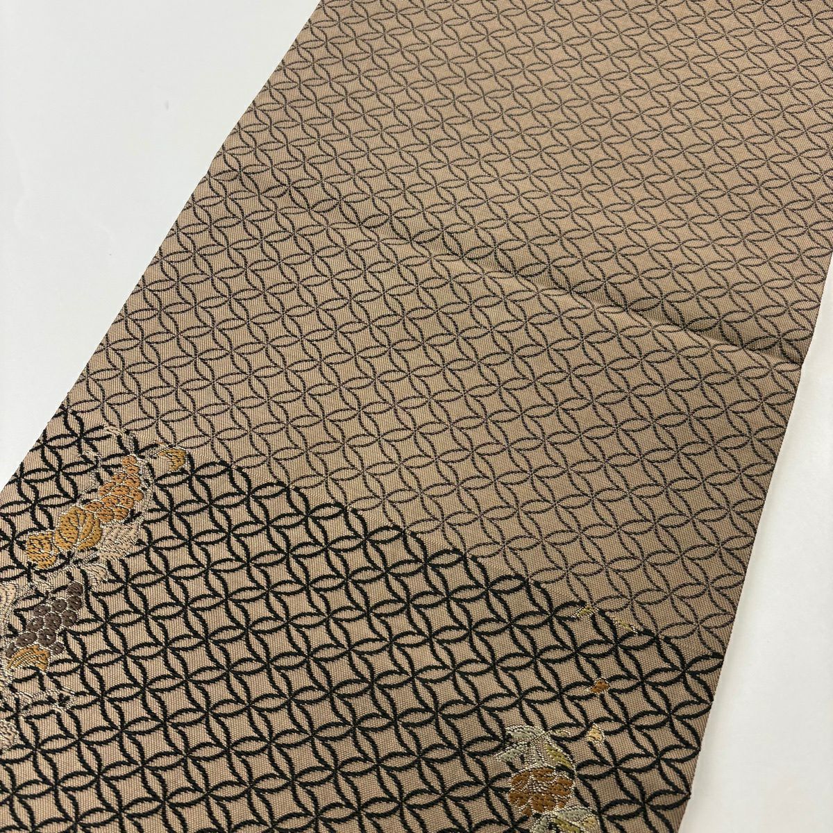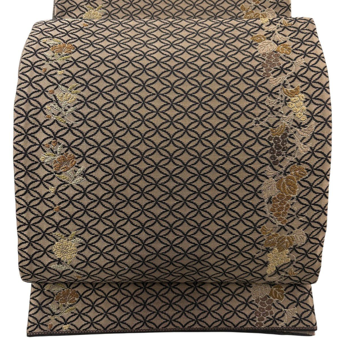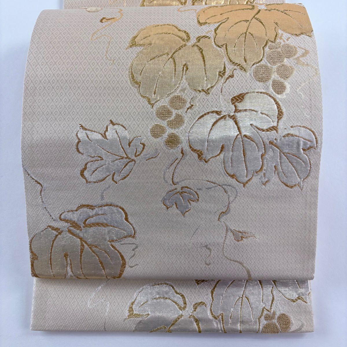 【美品】 袋帯 秀品 華文 葡萄唐草 箔 金糸 薄茶色 お太鼓柄 正絹