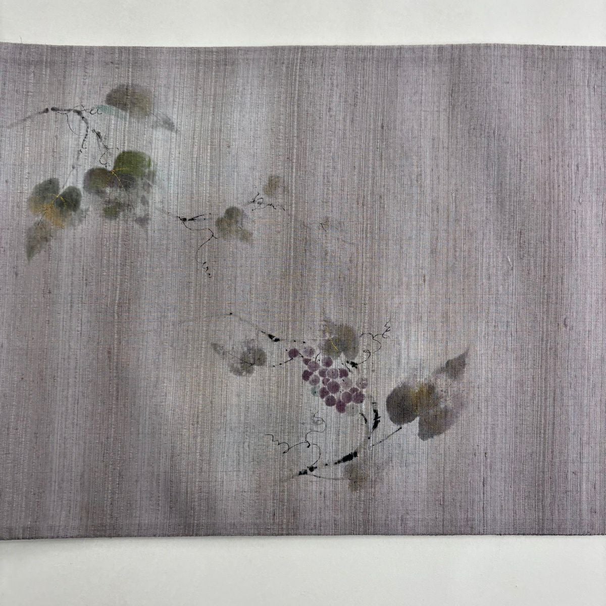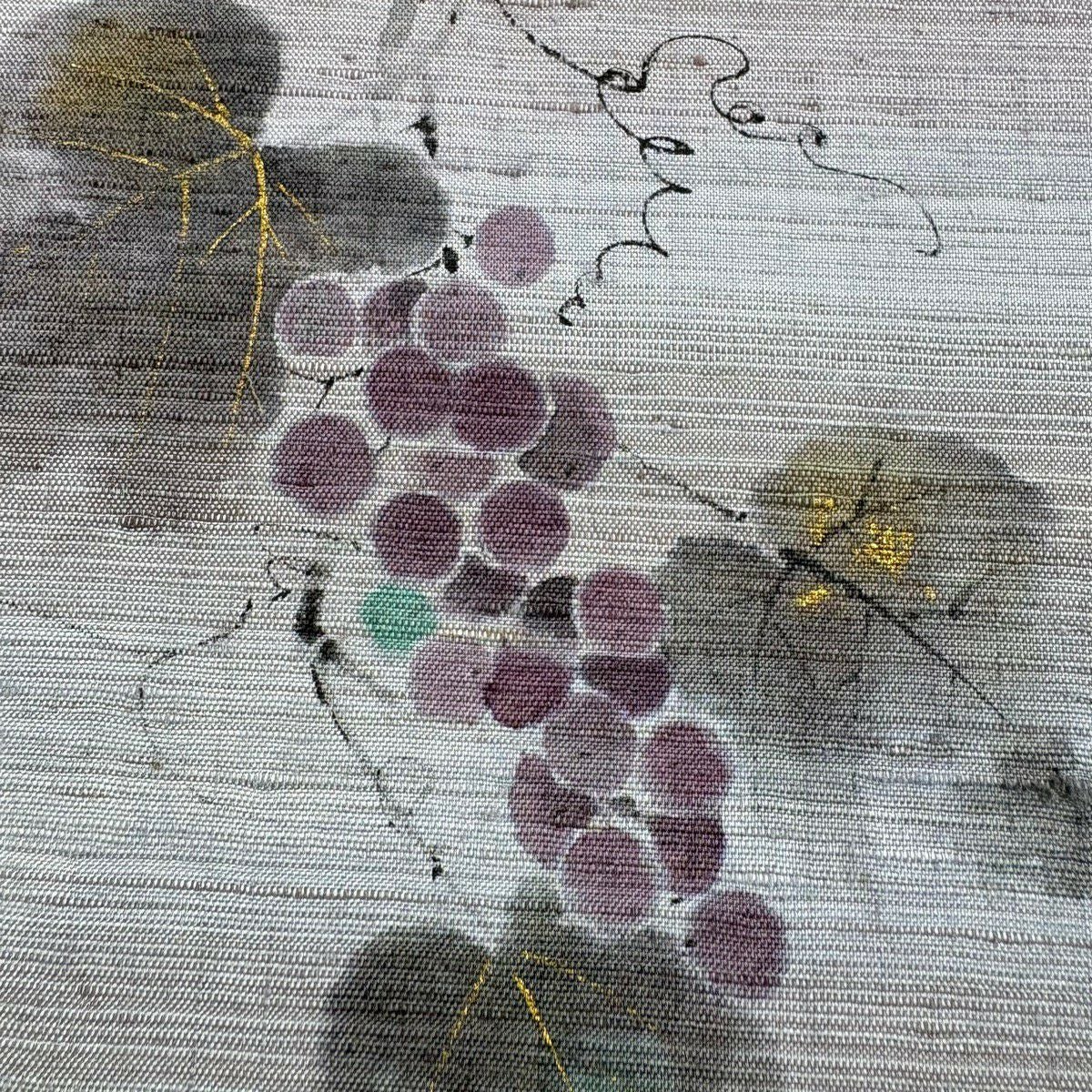 付下げ 身丈158.5cm 裄丈64cm M 袷 落款あり 葡萄 草花 染め分け ぼかし 灰緑 正絹 秀品
