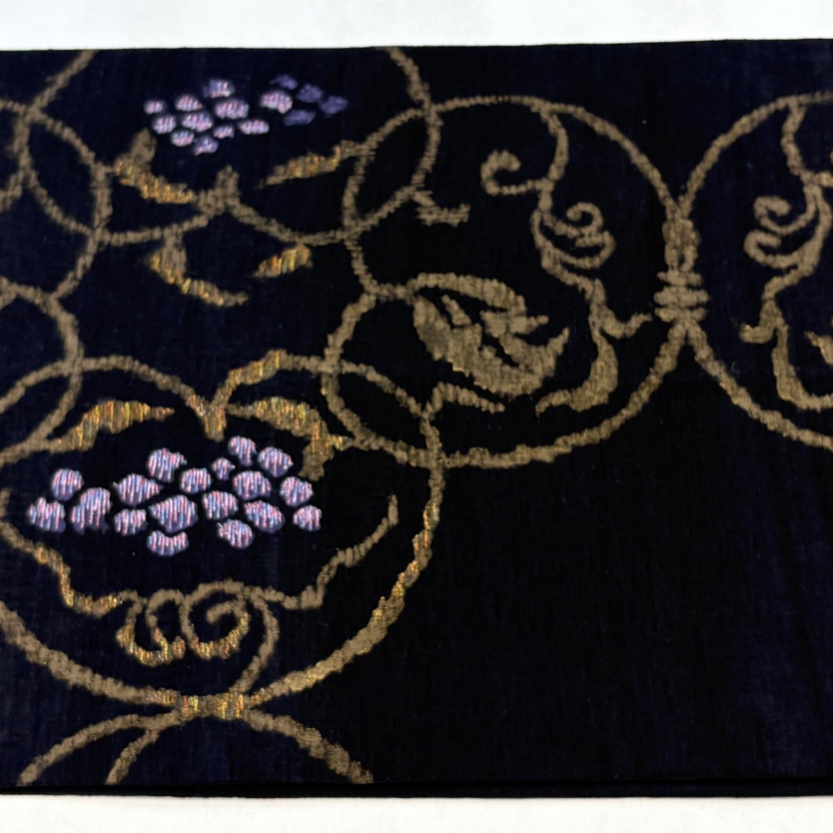 【美品】 袋帯 名品 西陣織 華文 葡萄唐草 箔 濃紫 六通 正絹