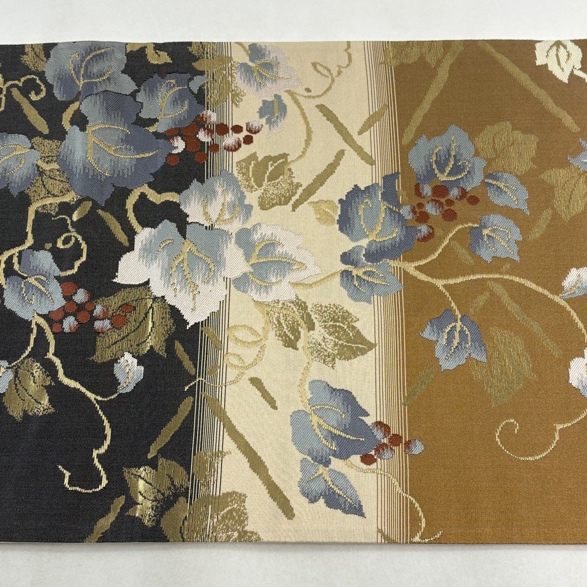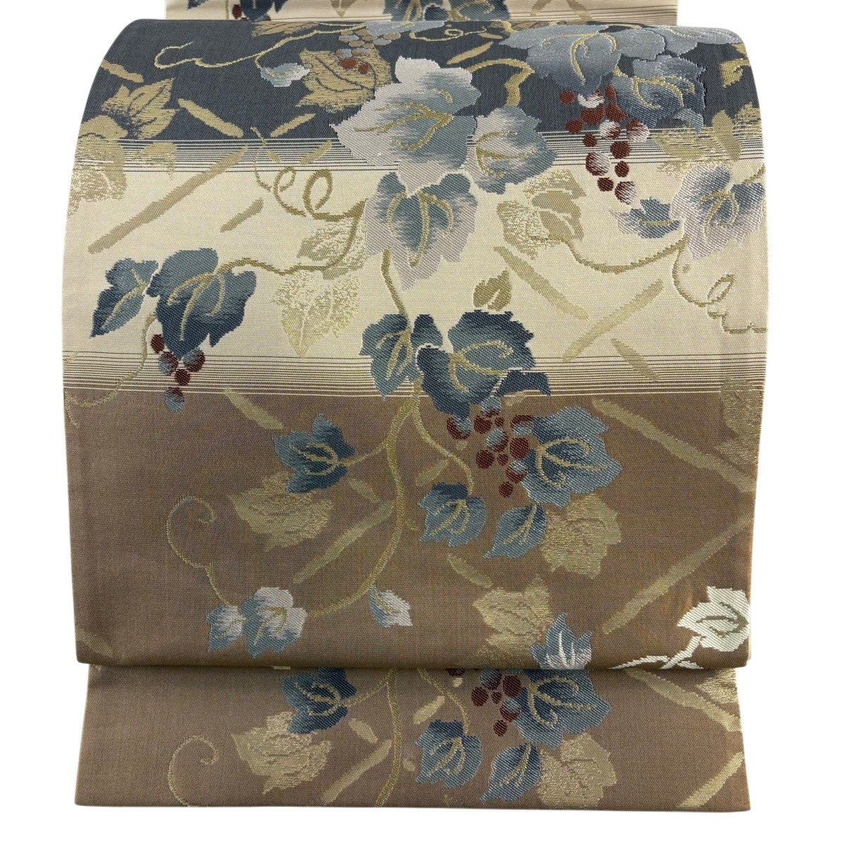 【美品】 袋帯 名品 葡萄唐草 華文 箔 草木染 茶色 お太鼓柄 正絹