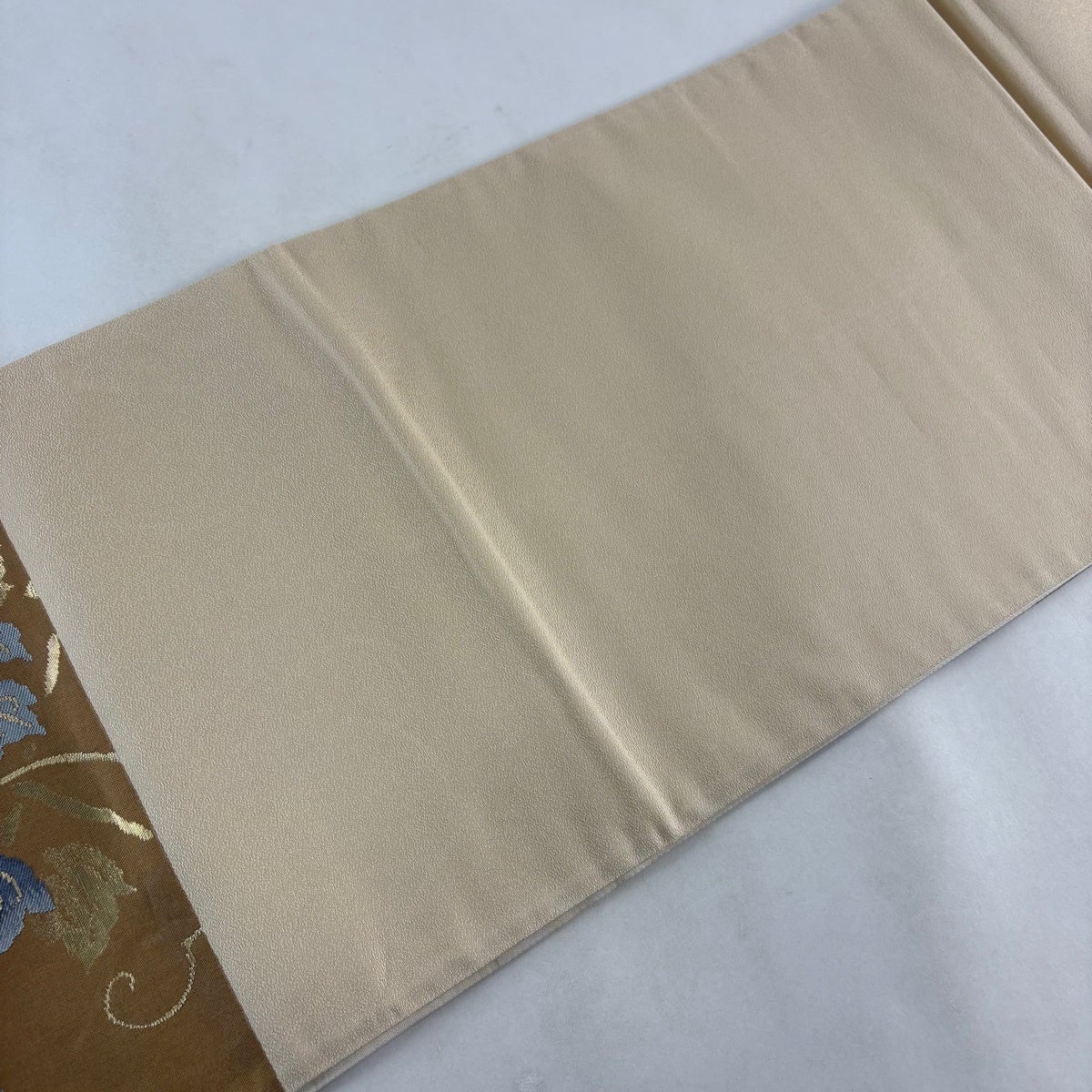 【美品】 袋帯 秀品 葡萄松秋草文 霞 金糸 唐織 山吹茶色 六通 正絹