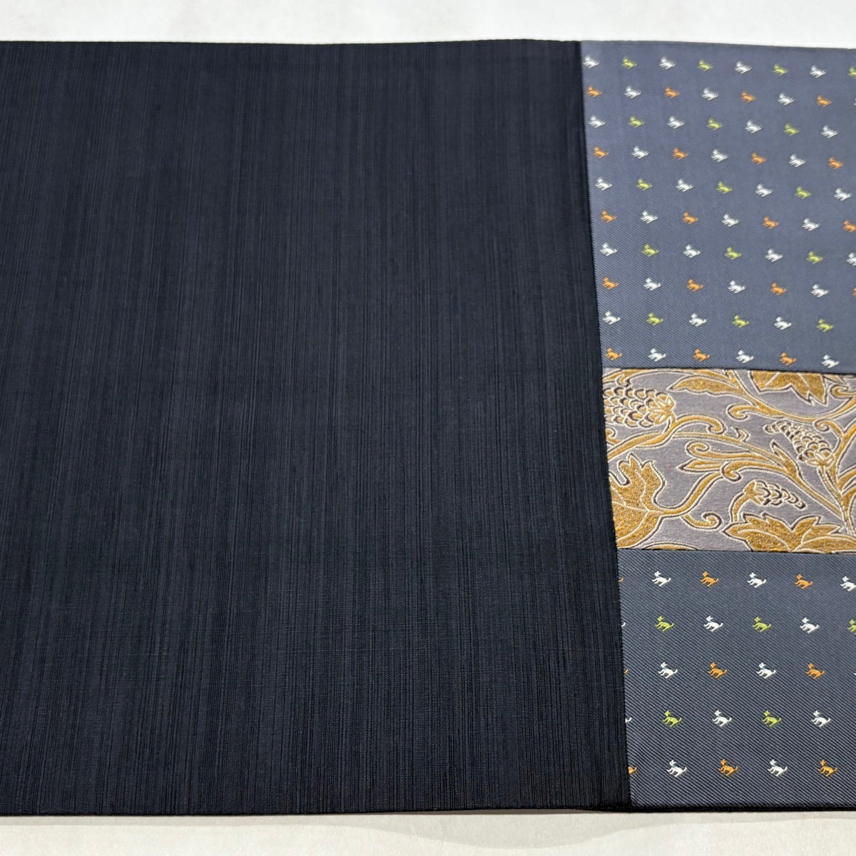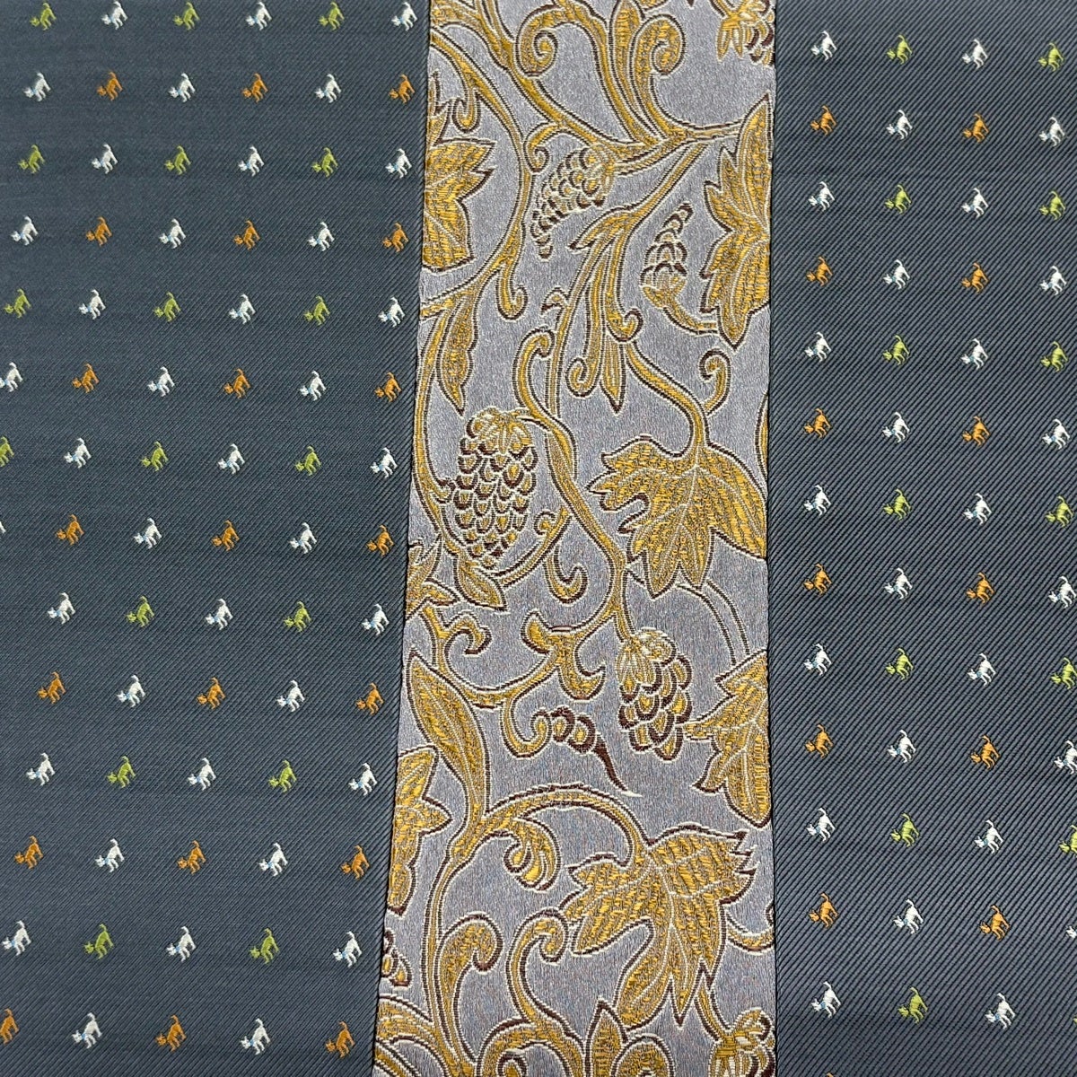 【美品】 袋帯 逸品 段縞 葡萄唐草 箔 金銀糸 青灰色 全通 正絹